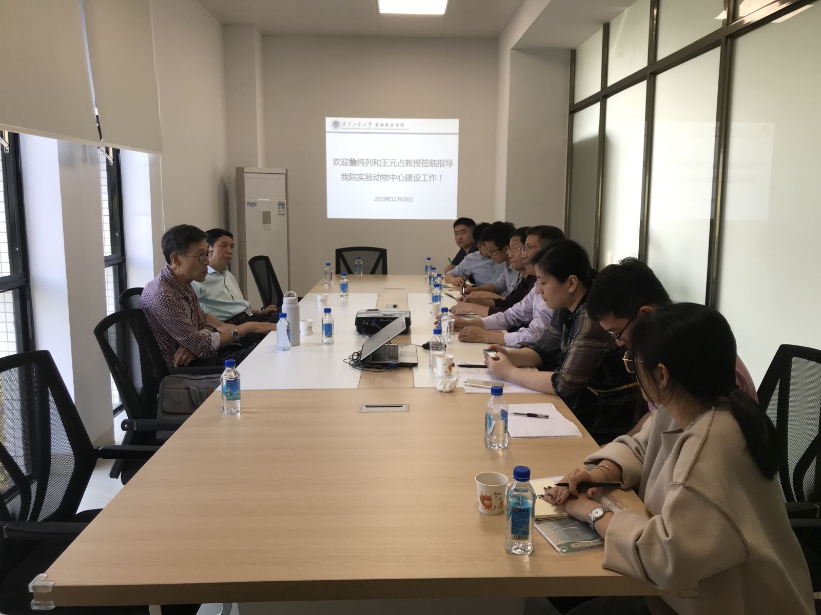 11月18日下午,广东省实验动物学会副理事长、南方医科大学附属南方医院实验动物中心主任王元占及广东省实验动物学会副理事长、广州军区广州总医院实验动物中心主任詹纯列到看足球的网站 指导实验动物中心建设工作。学院执行院长赵肃清、学院党委书记徐向东、副院长卢宇靖及各科研团队代表参加了座谈交流。 赵肃清介绍了看足球的网站 学科及科研情况、实验动物整体情况及存在问题,指出实验动物中心目前是看足球的网站 学科发展、科研创新的主要瓶颈,希望在专家的指导下建立符合国家标准的实验动物中心。各科研团队就团队科研需求、实验动物的使用管理、实验环境、实验人员的管理等与两位专家进行深入交流。 在对科技南楼进行实地考察后,詹纯列指出学院已具备一定的实验动物中心硬件基础、人员资质,可在屏障环境、普通实验室、动物暂养室等其他功能作相应的补充,重点加强动物中心的运行机制管理。王元占详细解读了《广东省实验动物管理条例》,希望学院做好动物中心的整体规划,调整功能分区布局,严格按照管理条例申请获得实验动物使用许可证,促进实验动物科学研究规范应用;同时介绍了其他科研院校单位的实验动物中心建设经验。 徐向东表示学院十分重视实验动物中心的建设工作,建立规范的实验动物中心是学院发展亟待攻克的难题,学院将按照有关规定,努力完善推进中心的建设,实现实验动物创新管理促进学科建设科学发展,为学校高水平大学建设添砖加瓦。