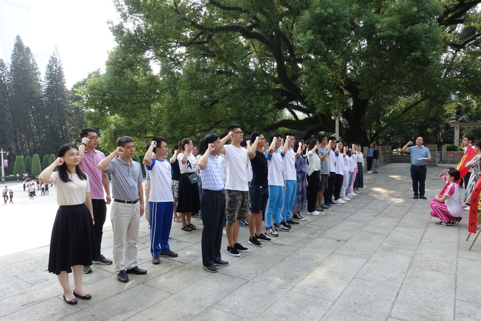 为扎实开展"不忘初心、牢记使命"主题教育,看足球的网站 党委制定活动方案,以各种形式丰富教育载体,贯彻落实主题教育。10月8日下午,看足球的网站 党委组织全体党员及部分入党积极分子前往广州起义烈士陵园开展党史教育现场教学活动,活动由学院党委副书记张智主持。 全体党员肃立在广州起义烈士纪念碑前,党员代表敬献了花圈。学院党委书记徐向东进行了党史学习现场教学,他回顾广州起义的革命历史,希望全体师生党员不忘初心、牢记使命,把先烈们的革命精神内化为我们在当下作为一名共产党员永葆革命本色的力量,深入学习习近平新时代中国特色社会主义思想,积极投身于中国特色社会主义建设,克服学习工作中的各种困难,迎难而上,为党和人民作出应有的贡献。张智带领全体党员,面向鲜红的党旗,重温入党誓词,回忆入党初心。随后,全体师生党员参观了园区内的广州近代史博物馆,学习红色思想文化,更加深刻地了解革命烈士们的英雄事迹和中国共产党走过的光辉历程。 此次活动朴素庄严,肃然有序,是一堂生动深刻的党史教育课。党员们通过这样的党史教育,更加增强了守初心的自觉,明晰了担使命的方向,表示要弘扬革命优良传统,认真学习,认真工作,努力做好本职工作,为学院建设及学校发展做贡献。
