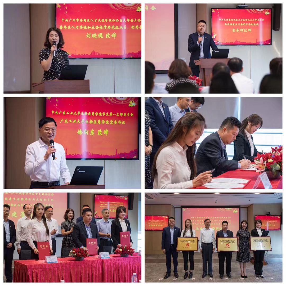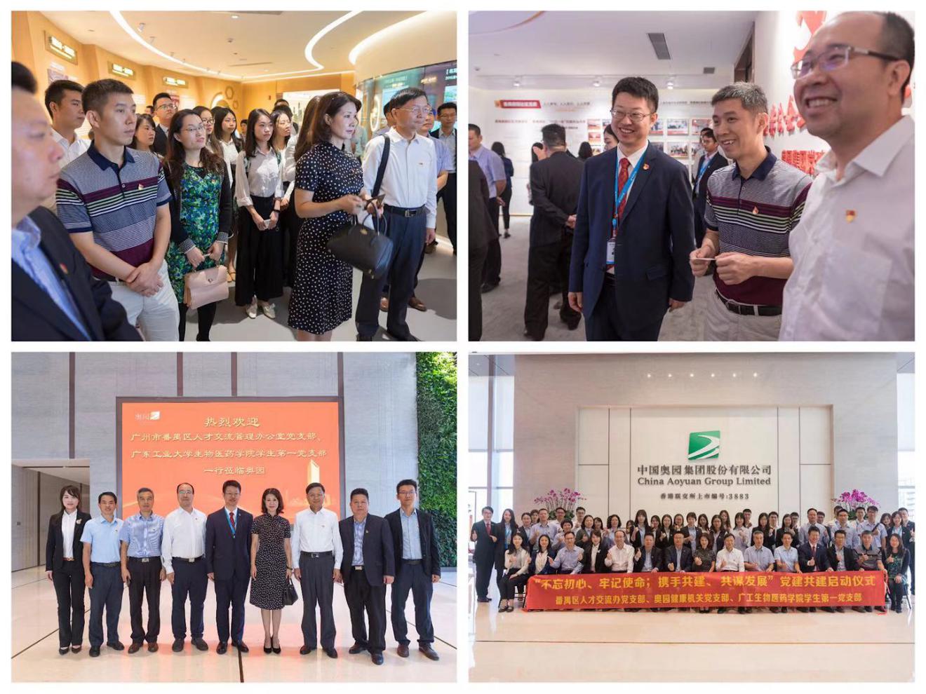 为深入学习贯彻习近平新时代中国特色社会主义思想及系列讲话精神,扎实推进“不忘初心,牢记使命”主题教育,推进新时代基层党建高质量创新发展,看足球的网站 学生第一党支部与番禺区人才交流管理办公室党支部、奥园集团健康生活集团机关党支部,联合开展政、校、企党建共建活动。 11 月 6 日上午,共建三方在万博商务区奥园集团总部举行“不忘初心、牢记使命;携手共建、共谋发展”党建共建启动仪式。出席共建仪式的有番禺区人力资源和社会保障局党组成员、副局长刘晓琨,奥园健康生活集团常务副总裁雷易群及看足球的网站 党委书记徐向东、党委副书记张智、副院长卢宇靖、学校保卫处副处长梁文锦、制药工程系党支部教师代表,三个支部的党员约50人参加了活动。 共建三方参观了奥园集团品牌馆,听取现场工作人员的有关情况介绍,加深对共建支部所在奥园集团的发展历程和成就的了解。