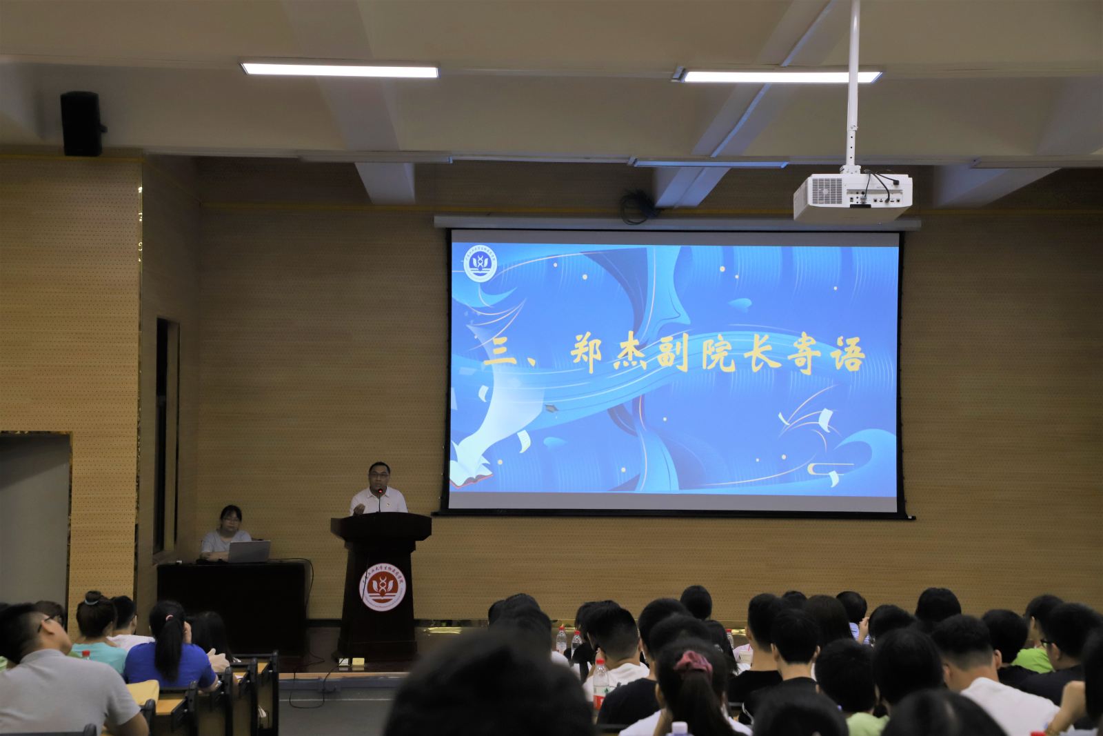 郑杰为新生带来了适应大学生活的建议,希望新生可以尽快完成身份的转化,做到:养成独立思考的习惯,锻炼积极创新的能力和提高综合素质等三点。