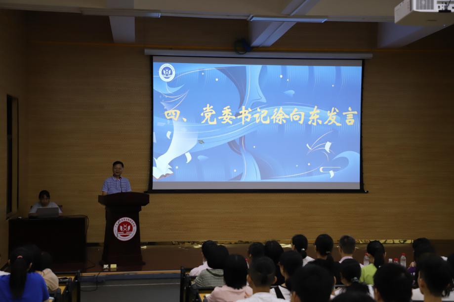 徐向东首先对2020级新生的到来表示了热烈欢迎和衷心祝贺,并指出当代大学生应当积极了解党和中华人民共和国的发展史和奋斗史,培养民族自豪感和爱国情怀:学习上要不畏困难、将自身所学与国家需求有机结合,为祖国建设添砖加瓦:在生活上要积极向上,将奋斗精神融入到自身的发展中,使自身成长为合格的中国特色社会主义事业的建设者和接班人。