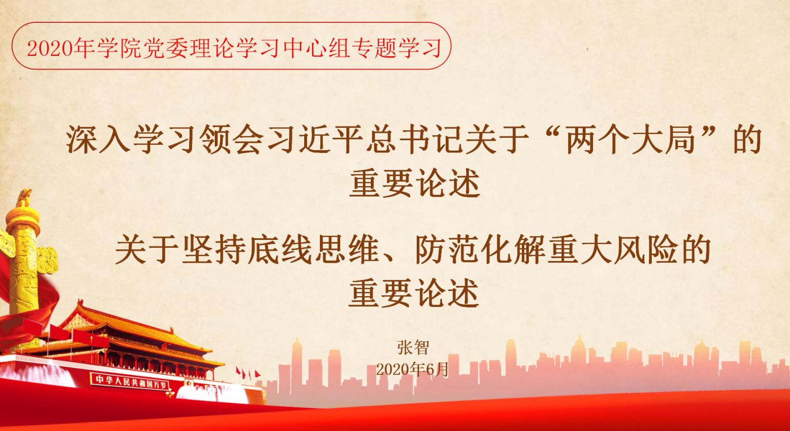 6月30日下午,看足球的网站 党委理论学习中心组开展线上集体学习活动,深入学习领会习近平总书记关于“两个大局”、“坚持底线思维、防范化解重大风险”及“意识形态工作”等重要论述,理论学习中心组成员参加了学习,学习活动由学院党委书记徐向东主持,由学院党委副书记张智、制药工程系党支部书记丁金龙主讲。 张智围绕习近平总书记关于“两个大局”及“坚持底线思维、防范化解重大风险”的重要论述进行阐述,分享其对两个大局及底线思维科学内涵的理解。他认为要以“两个大局”为谋划工作的基本出发点,深刻认识和准确把握粤港澳大湾区生物医药产业的发展机遇,坚持底线思维,把防范化解重大风险作为当前学院重要的政治任务,把防范化解重大风险工作做实做细做好,提升学院学生管理工作特别是学生实验室安全及毕业生就业工作水平。 丁金龙结合自己学习习近平总书记关于意识形态工作重要论述的学习体会,重点就如何牢牢掌握全媒体时代意识形态话语权,站稳守好高校意识形态工作前沿阵地进行学习分享。结合近期网络上某些师生关注的舆论热点问题,他认为高校意识形态工作的对象既有教师也有学生,要加强“互联网”意识形态主阵地管理,把思想政治工作贯穿教育教学全过程,做好学院的教育教学工作。