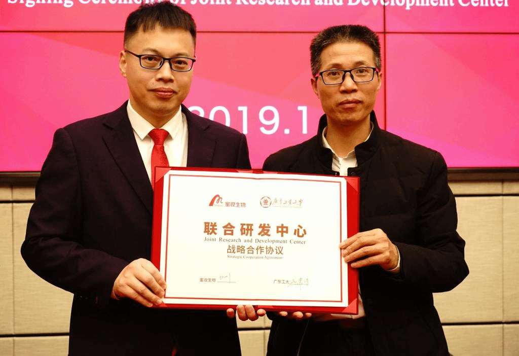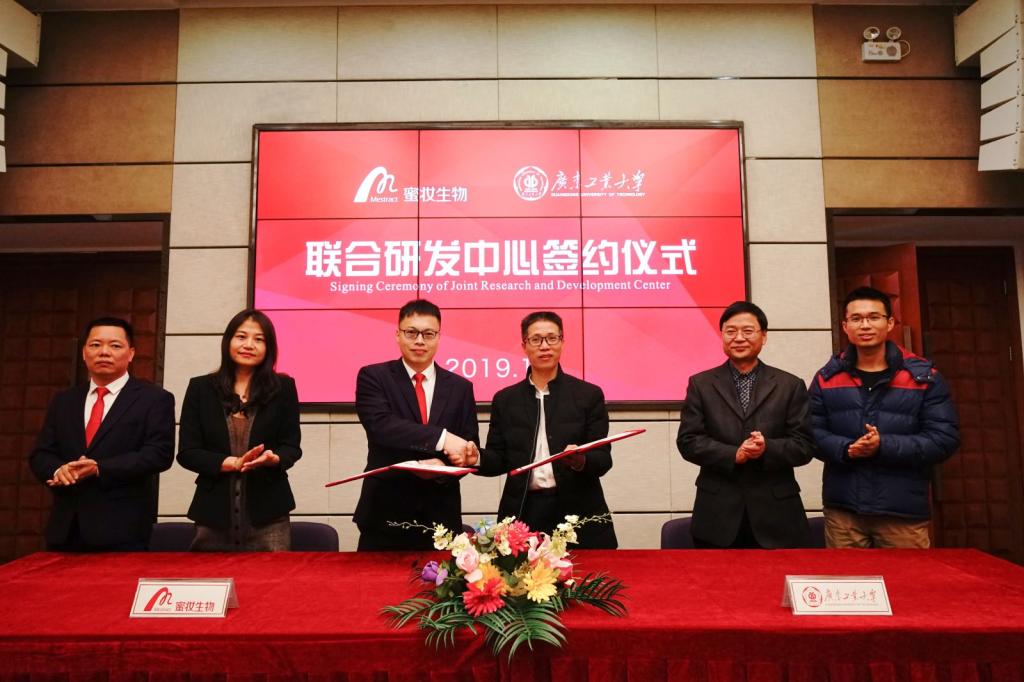 2019年1月3日下午,足球直播平台 与广州蜜妆生物科技有限公司联合研发中心签约挂牌仪式在广州蜜妆生物科技有限公司举行。学院执行院长赵肃清、党委书记徐向东、专业教师崔锡平、张磊博士等师生与广州蜜妆生物科技有限公司田贵丰总经理、饶刚总监、王玙瑜副总经理、李晓波副总经理等出席了仪式。 校企双方首先进行了座谈交流,互相介绍了校企双方的基本情况;随后,在公司领导的陪同下,学院一行人参观了公司的研发基地、生产车间、产品展示厅等,让我们对公司有了更深入的了解。广州蜜妆生物科技有限公司,是一家集化妆品原料研制、配方开发、加工生产及配套性服务为一体的全球化妆品OEM/ODM服务企业,经过十多年的不断发展完善与技术提升,在行业内颇具口碑和影响力。 赵肃清和饶刚分别代表校企双方签署联合研发中心合作协议,并共同为联合研发中心揭牌,这标志着足球直播平台 和广州蜜妆生物科技有限公司在产学研合作方面正式建立合作关系,为看足球的网站 人才培养、校企合作、科研开发等方面进一步实现优势互补、资源共享,促进共同发展、共同进步,精准培养符合社会需求的人才。(文:崔锡平,图:蜜妆生物公司、足球直播平台 )