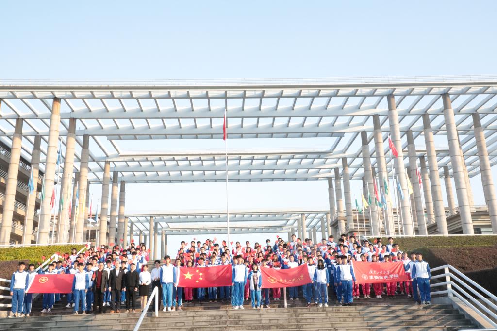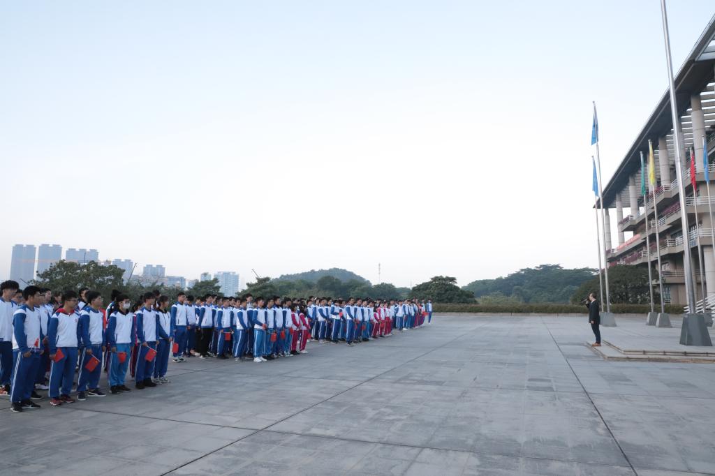 2020年12月7日,足球直播平台 在学校正门广场举行“与信仰对话-‘新时代国旗文化与使命’”升旗仪式活动,学院党委副书记张智、学校就业指导中心副主任喻乐、足球直播平台 辅导员黄文浩以及2020级全体同学参加了本次活动。