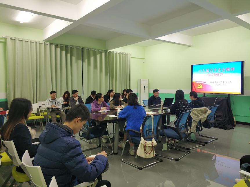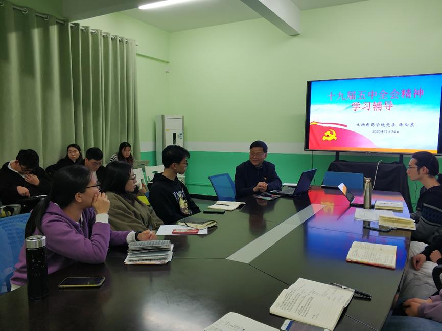 2020年12月24日晚,学院党委书记徐向东在科技南楼407会议室为足球直播平台 学生第四党支部党员进行了“十九届五中全会”精神学习辅导。