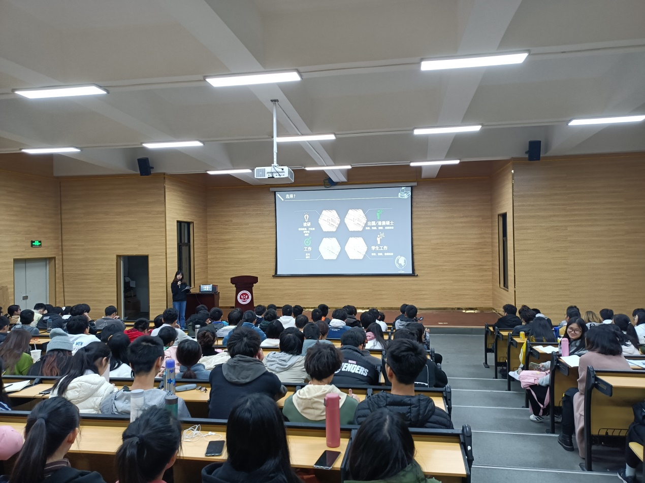 12月19日下午,看足球的网站 在科技南楼学术报告厅召开了2019级本科生年级大会。本次大会邀请了2017级保研学生代表黎芷茵、苏静怡,2019级本科生全体同学和辅导员万敏出席。