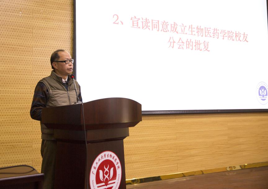 陈卓武作大会讲话,他回顾了广东工业大学的办学历史和各院系、各地区校友组织的建设历程,要求学院应坚守“与广东崛起共成长,为广东发展做贡献”的办学理念,落实学校第五次党代会精神,抓住机遇谋求发展,不断为学生成长提供更好的环境。陈卓武代表学校和校友总会提出三点希望,一是坚持以服务校友为宗旨,不断加强组织自身建设;二是坚持以服务社会为使命,不断创造人生价值;三是坚持以服务母校为已任,不断促进母校校友共同发展。他强调校友分会要在联系中加强交流,在支持中促进发展,彼此关心,互帮互助,与其他地区的校友会加强联系,为校友创造更多精彩的发展机会和发展平台,将校友分会打造成一个团结向上、温暖的大家庭。