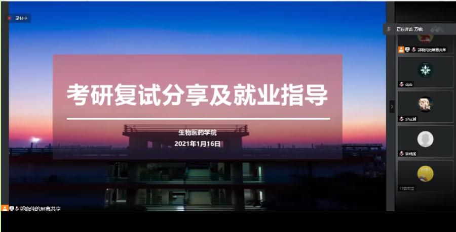 2021年1月16日晚上,看足球的网站 于腾讯会议召开了2017级考研复试分享及就业指导线上会议,本次会议邀请了2016级5位考上研究生的同学分享复试经历与心得体会,2017级考研同学参与,会议由年级辅导员万敏主持。