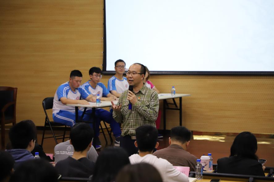 辩论是一项可以提高思辨能力,丰富课余知识,培养团队精神,锻炼思维表达能力的活动,2021年4月9日,足球直播平台 在科技南楼一楼报告厅举行了第一届辩论赛决赛,辩论双方围绕“大学生进入社会以后应该干一行爱一行还是爱一行干一行”进行辩论,学院党委副书记张智、华南农业大学陈启豪老师、辅导员黄文浩及学生代表出席了本次活动。