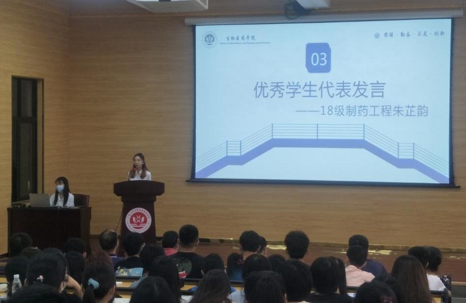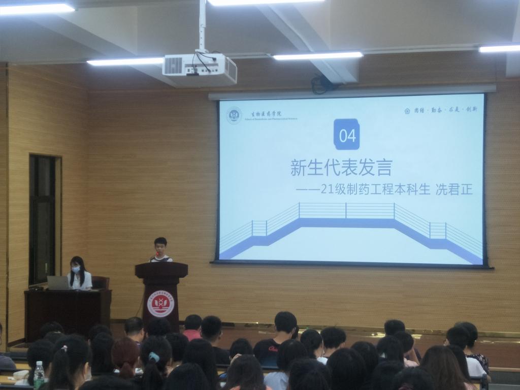学生代表2018级制药工程专业朱芷韵同学向各位新生分享了四年的规划以及收获。博士研究生新生代表千爱君、本科新生代表冼君正发言,两位同学在发言中表达了对学院和学校的热爱之情,以及对未来学习生涯的展望,鼓舞新生们实现自身梦想、为校争光。