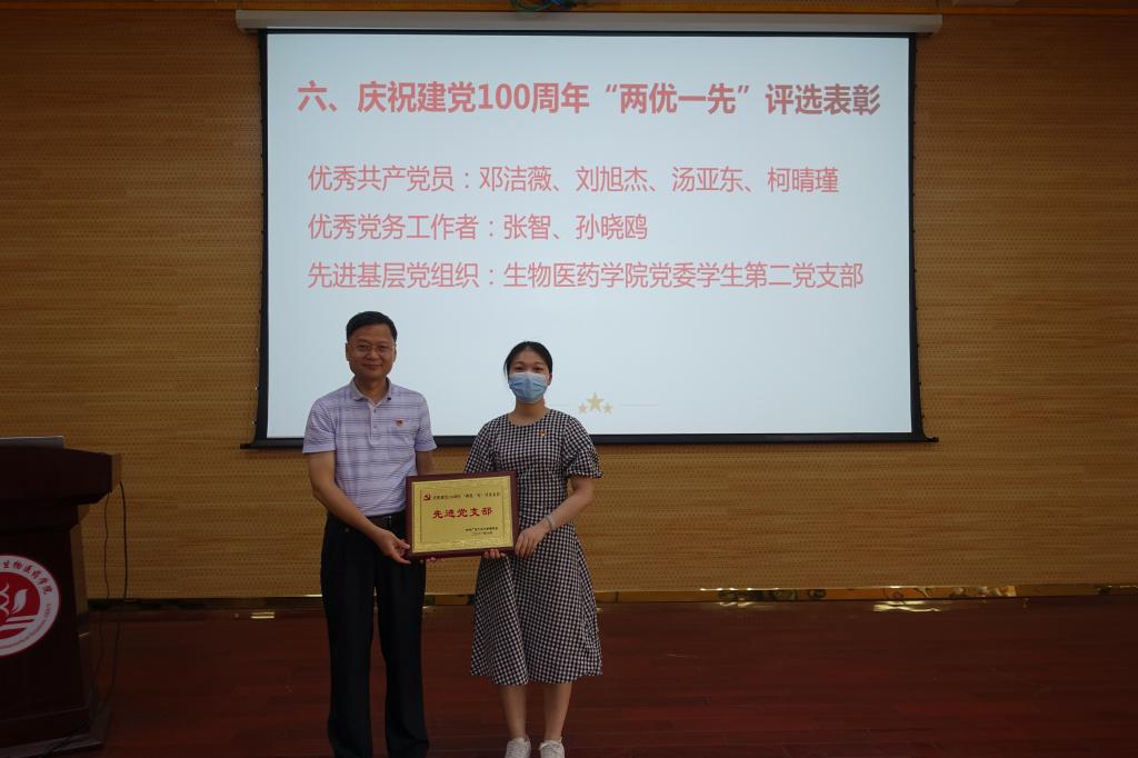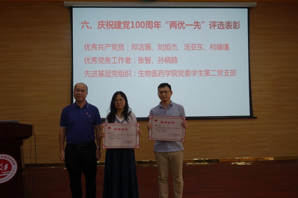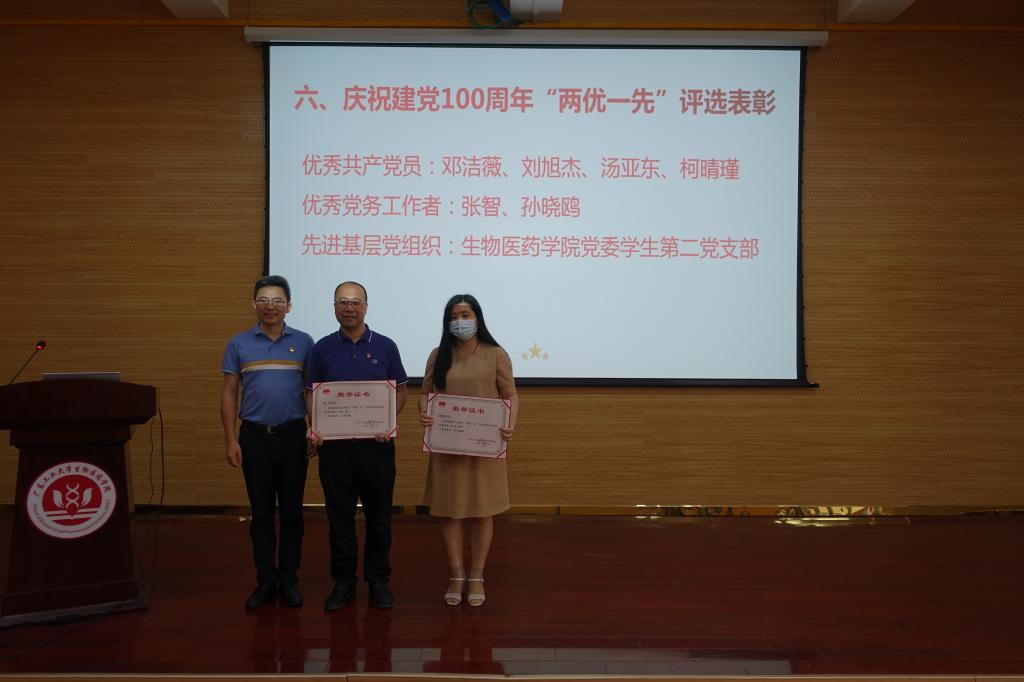 学院党政领导班子成员为在学校庆祝建党100周年“两优一先”评选表彰中获得优秀共产党员、优秀党务工作者表彰的教职工、获得先进基层党组织表彰的党支部颁发荣誉证书;为在足球直播平台 第二届青年教师授课竞赛暨广东工业大学第九届青年教师教学竞赛预赛中获奖的教师颁发荣誉证书及奖金。