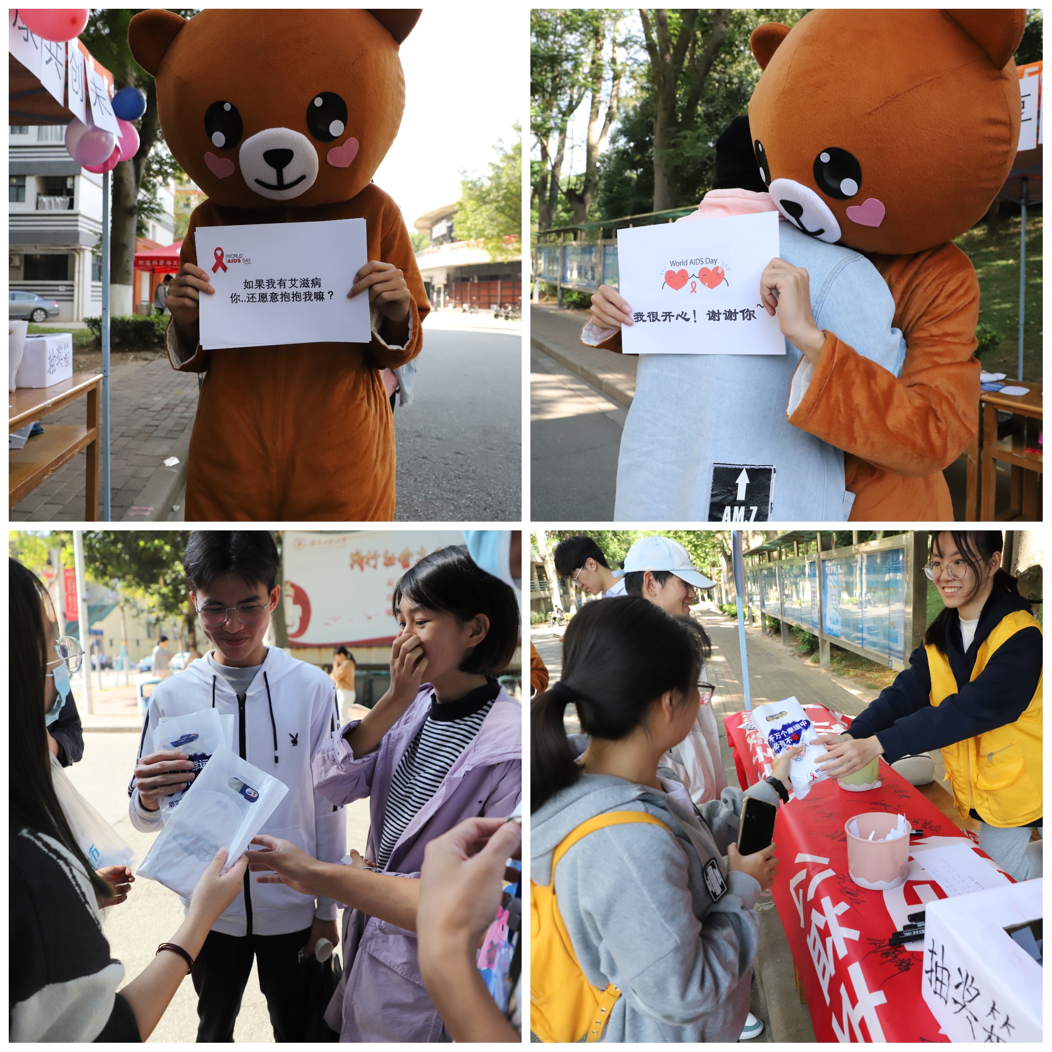同时,学院团委学生会、青春健康协会在校园内举办预防艾滋病知识科普的宣传活动,宣传摊位开展了防艾限定版绕口令、竞速抢答等趣味游戏,让同学们通过趣味游戏加深对艾滋病相关知识的了解,提高了同学们参与艾滋病防治工作的积极性及自我防治意识,为健康校园贡献一分力量。