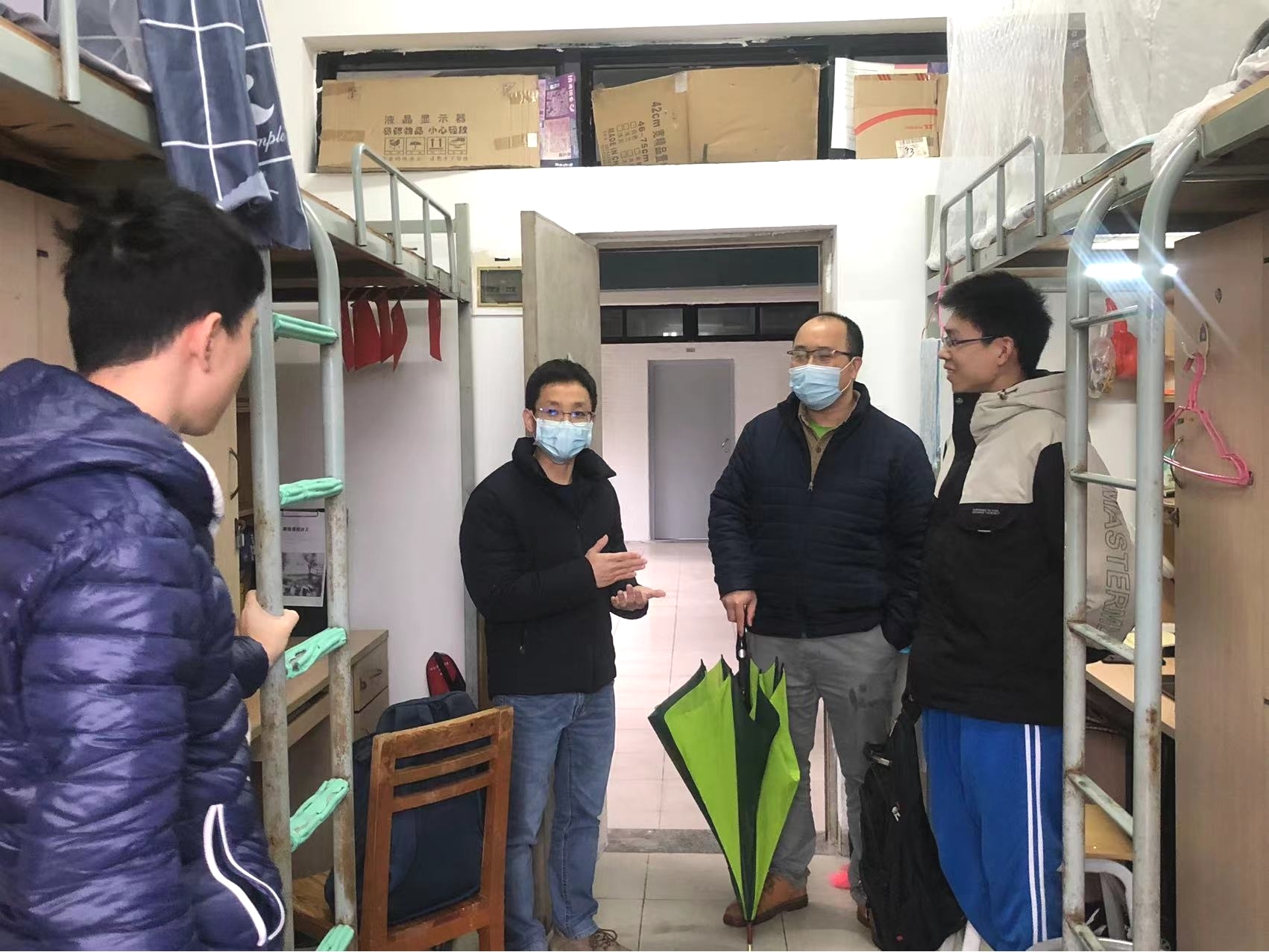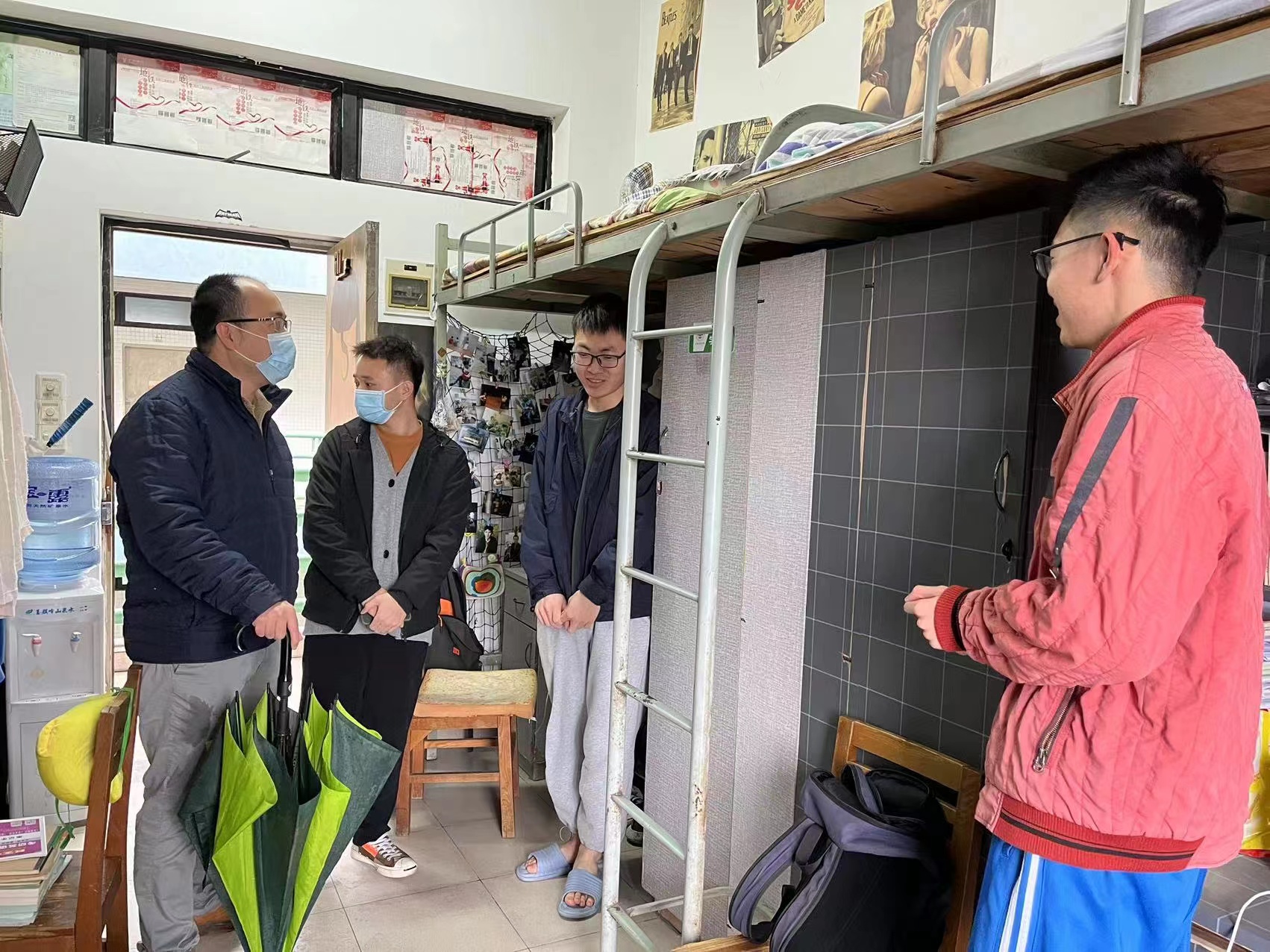 为保障新学期学生有序返校,2月18-20日,看足球的网站 组织新学期走访学生宿舍工作,学院党委副书记张智会同学生工作处副处长罗嘉文、思教科科长郭娟娟,率领辅导员、班主任等分批走访院学生宿舍,了解学生思想动态、解决难题,提醒学生注意保暖、安全用电、提防诈骗等。