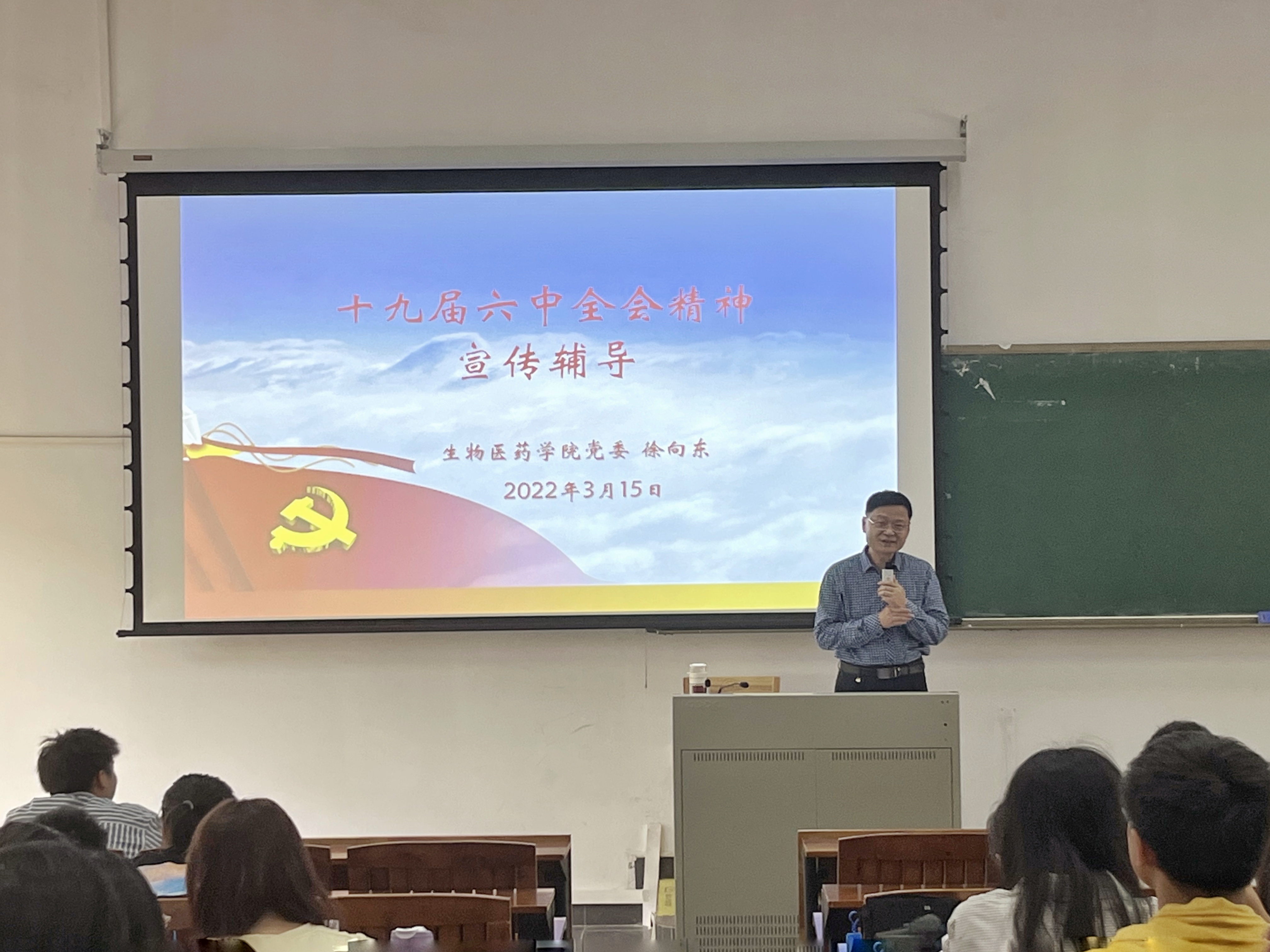 徐向东以“十九届六中全会精神宣传辅导”为主题,带领大家重点学习了《中共中央关于党的百年奋斗重大成就和历史经验的决议》中七个方面的内容:夺取新民主主义革命伟大胜利、完成社会主义革命和推进社会主义建设、进行改革开放和社会主义现代化建设、开创中国特色社会主义新时代、中国共产党百年奋斗的历史意义、中国共产党百年奋斗的历史经验、新时代的中国共产党。徐向东深入浅出地为同学们回顾了党的百年奋斗历史征程,并鼓励同学们要坚定理想信念,全面贯彻习近平新时代中国特色社会主义思想,努力争当习近平新时代中国特色社会主义思想的坚定信仰者和忠实实践者;要牢记初心使命,肩负新时代赋予青年的重任与使命,接好时代的接力棒;要把个人成长与国家发展相联系,以伟大建党精神作为广大新时代青年的思想与行动指引,以优异成绩迎接党的二十大胜利召开。