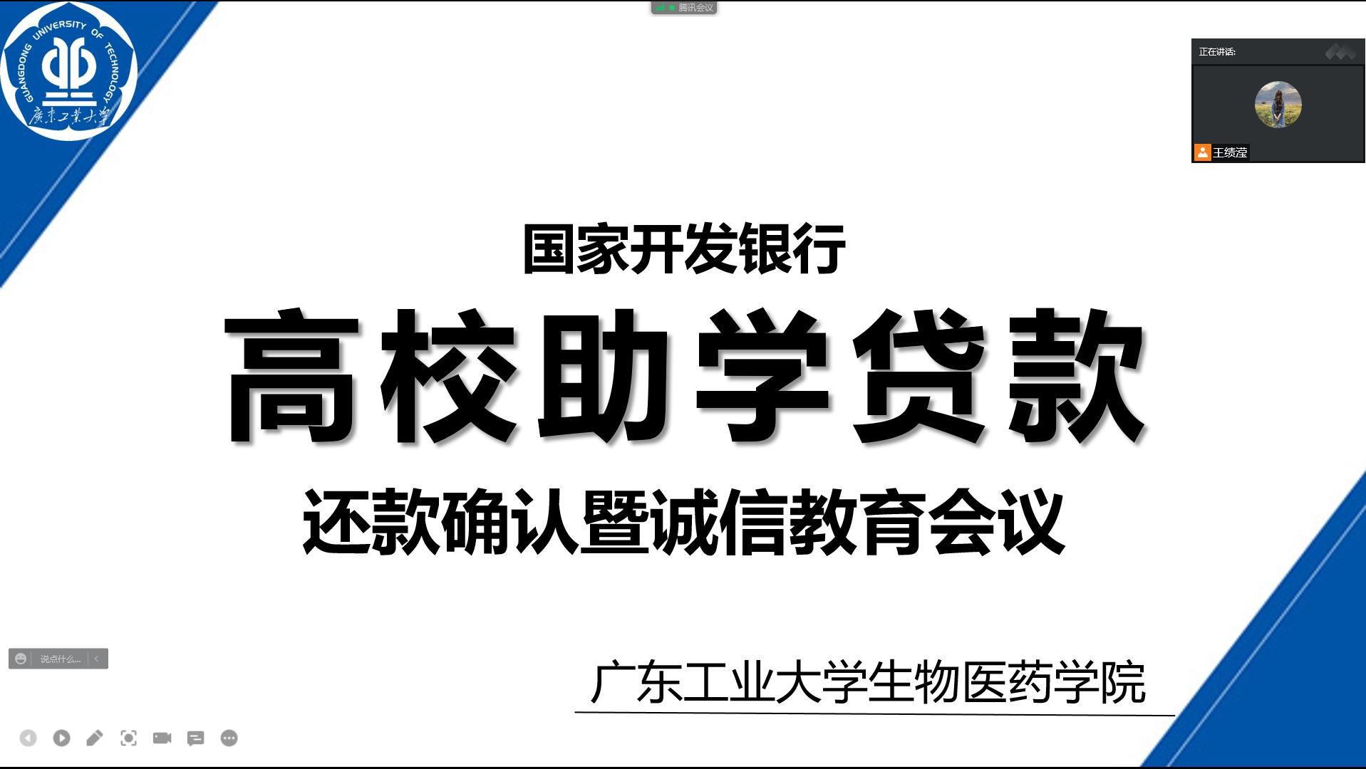 为增强学生的诚信意识、风险防范意识和责任担当,营造诚信为荣的校园文化氛围,6月8日晚上,看足球的网站 在腾讯会议线上开展2022届毕业生助学贷款还款确认暨诚信教育会议,辅导员王绩滢老师和全体2022届贷款毕业生参加了会议。