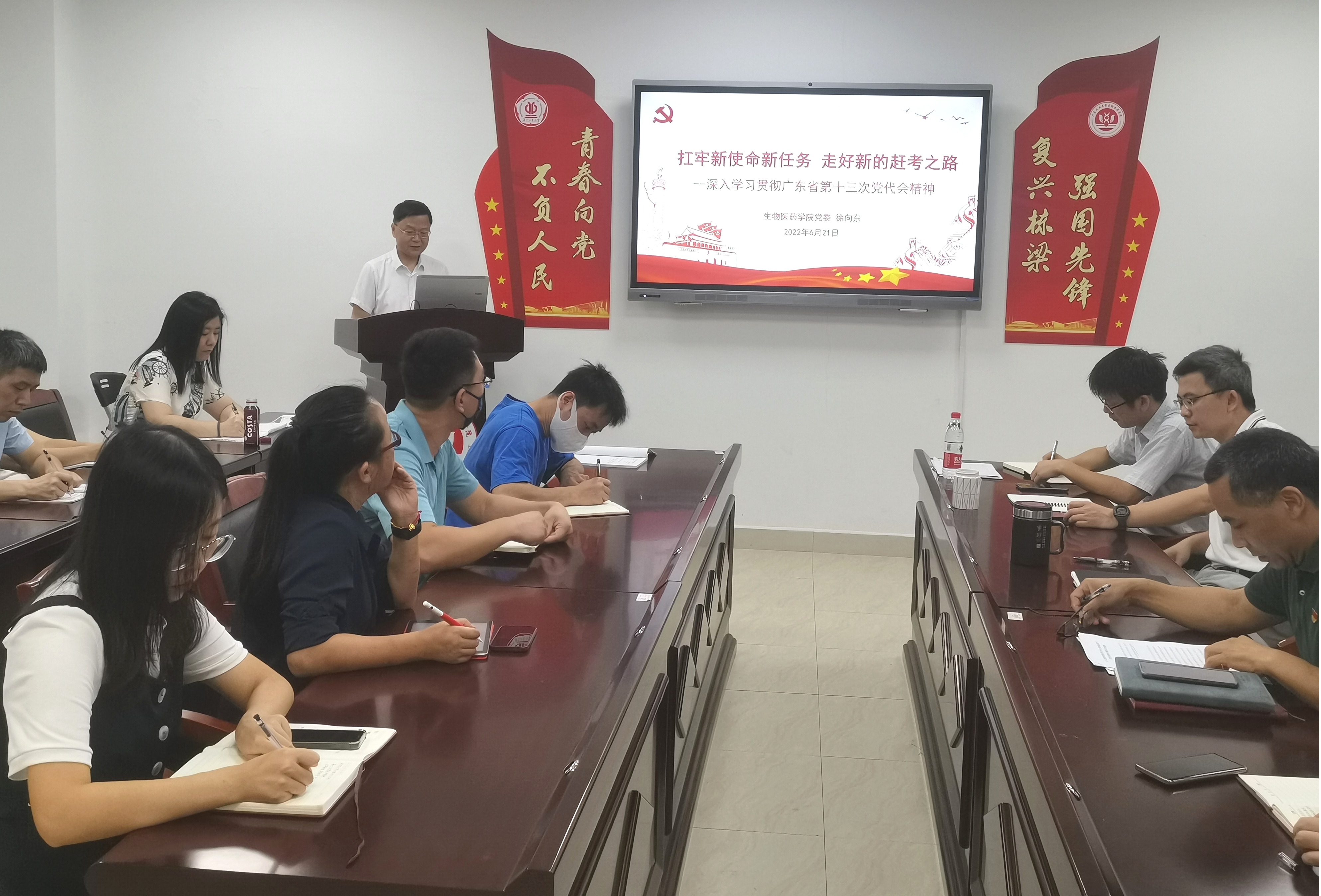 徐向东对各党支部开展学习贯彻广东省第十三次党代会精神提出了要求:一是深刻学习领会广东省第十三次党代会精神,进一步提高政治判断力、政治领悟力、政治执行力;二是把学习好、宣传好、贯彻好广东省第十三次党代会精神作为当前和今后一个时期的重大政治任务;三是要求看足球的网站 全体师生党员忠诚拥护“两个确立”,坚决做到“两个维护”,将学习转化成工作实际,落实学校第五次党代会精神,做好学院党的建设,用发展的眼光持续推进学院学科建设,为我校“1+2+3”攀撑计划学科提升工程提供有力的支持,并以此为契机作为推动学院高质量发展重要考验,扎实推进,落地见效。