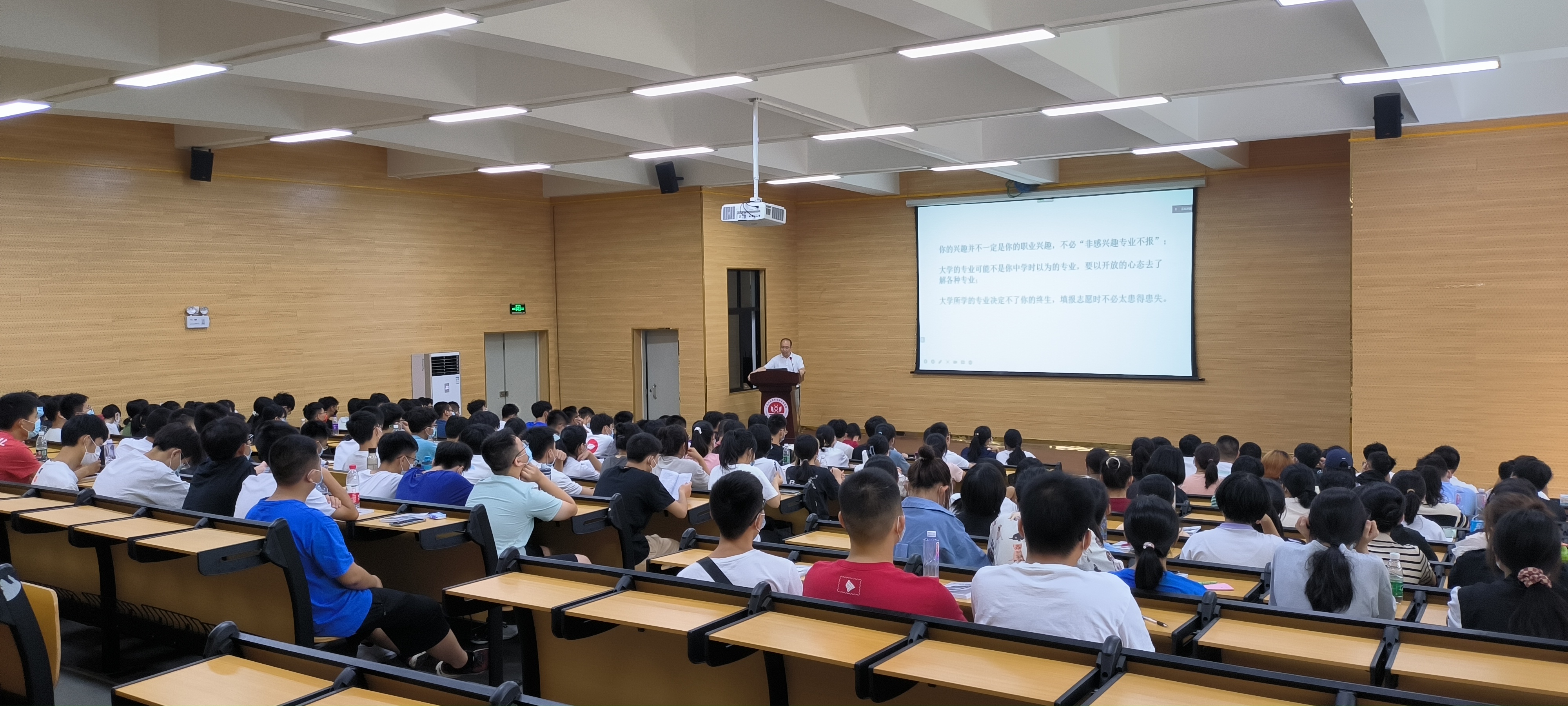 为在2022级新生入学教育阶段帮助新生尽快适应大学生活,做好大学四年学习生活规划,增强自我定位与自我认识,看足球的网站 于9月6日上午于科技南楼报告厅开展青春启航-职业生涯规划讲座,由学院党委副书记张智主讲。辅导员陈海琛和全体本科生新生参加此次讲座。