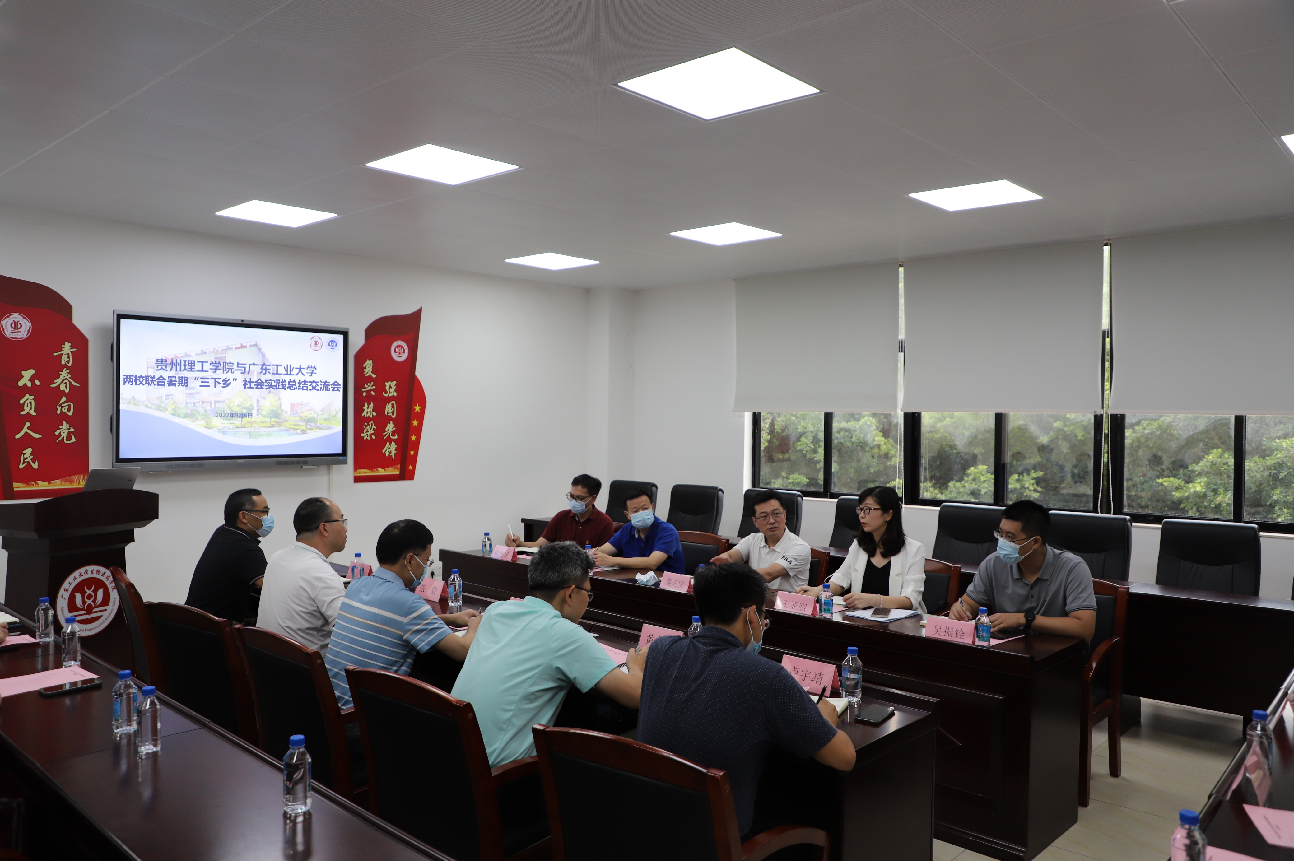 9月6日下午,贵州理工学院与广东工业大学两校联合暑期“三下乡”社会实践总结交流会在科技南楼203-4会议室举行。广东工业大学党委常委、副校长栾天罡,贵州理工学院团委书记(挂职看足球的网站 副院长)黄名正、校团委书记王亚煦、学生处副处长罗嘉文、校团委副书记吴振铨,学院领导班子成员、辅导员、学生代表参加了本次会议,会议由看足球的网站 党委副书记张智主持。