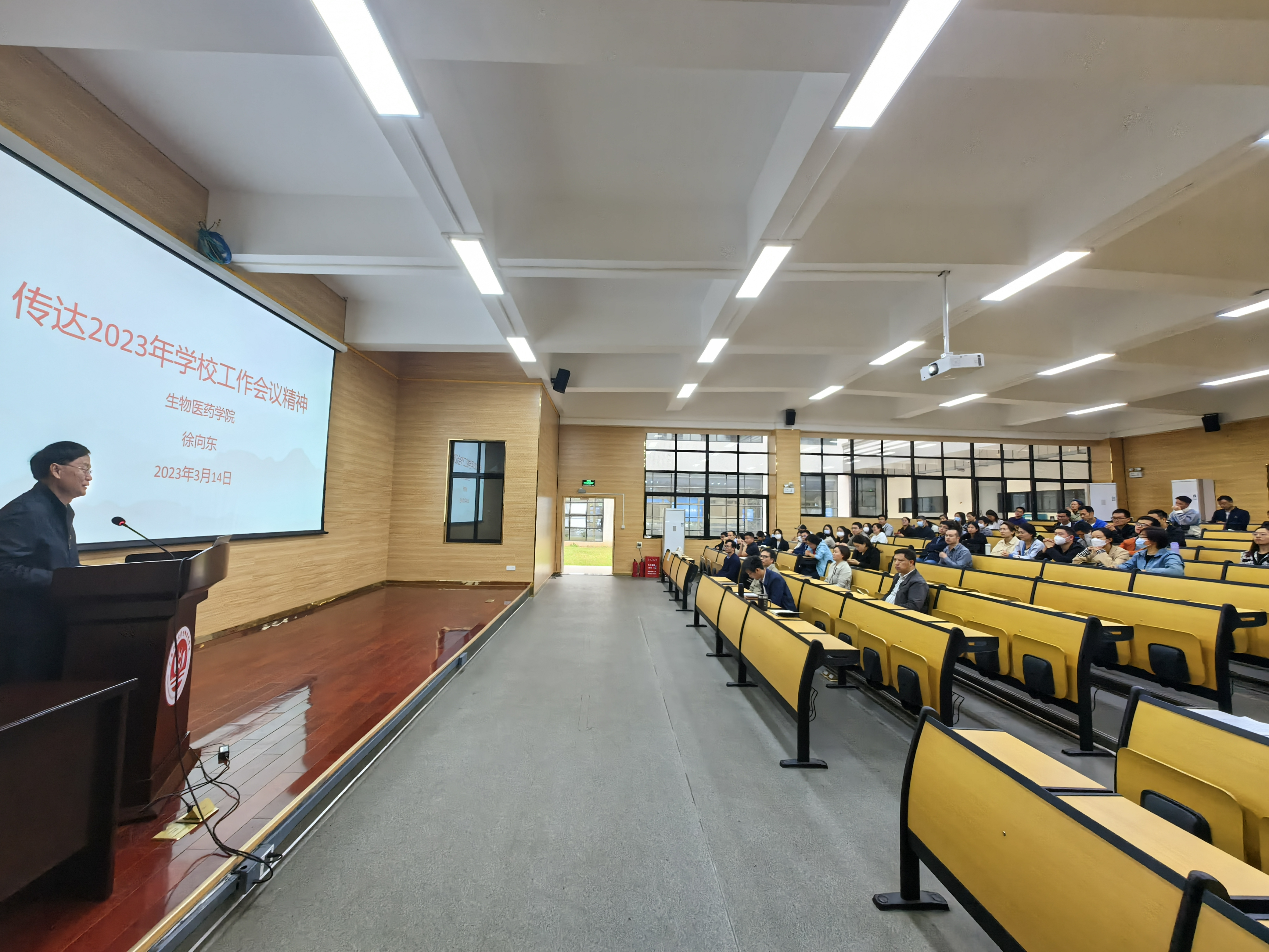 学院党委书记徐向东传达了2023年学校工作会议精神。传达了学校党委书记胡钦太对2023年学校党委重点工作的八个方面部署;传达了校长邱学青对新一年学校发展的六方面重点工作。