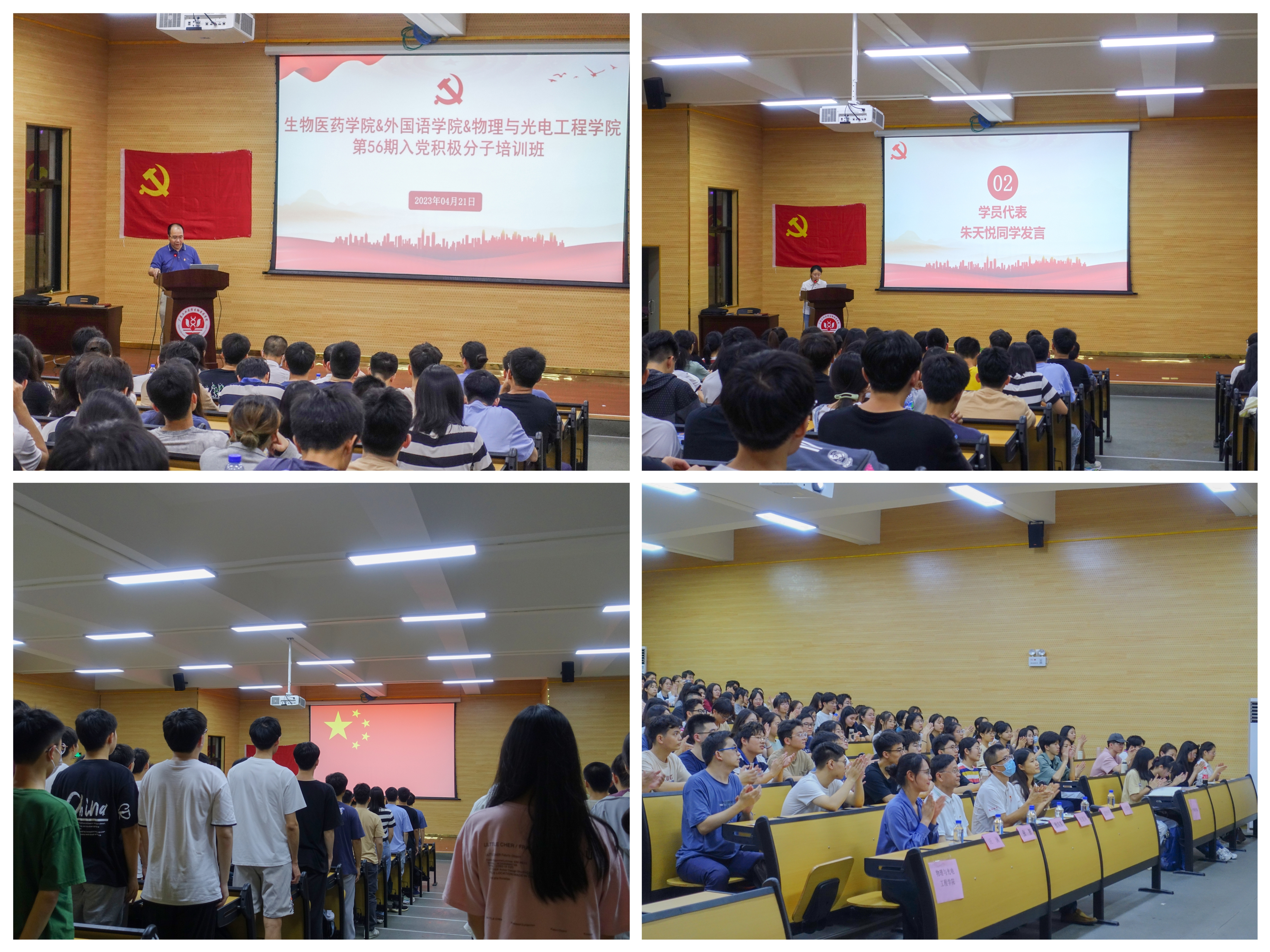 4月21日,看足球的网站 与外国语学院、物理与光电工程学院联合举办的第56期入党积极分子培训班正式开班。学院党委书记徐向东、党委副书记张智、外国语学院党委副书记张建岗、三院学生党建指导老师以及全体入党积极分子参加了本次活动。开班仪式由学院党委副书记张智主持。在全体学员响亮的国歌声中,开班仪式正式开始。学院党委书记徐向东作动员讲话,希望全体学员要认真学习习近平新时代中国特色社会主义思想和党的二十大精神,从中汲取智慧和力量,端正入党动机,提高党性修养,践行党的宗旨,在思想上、行动上积极向党组织靠拢。足球直播平台 学员代表朱天悦发言,她代表全体学员承诺:严格遵守纪律,严肃认真学习,随时接受党组织的考验。