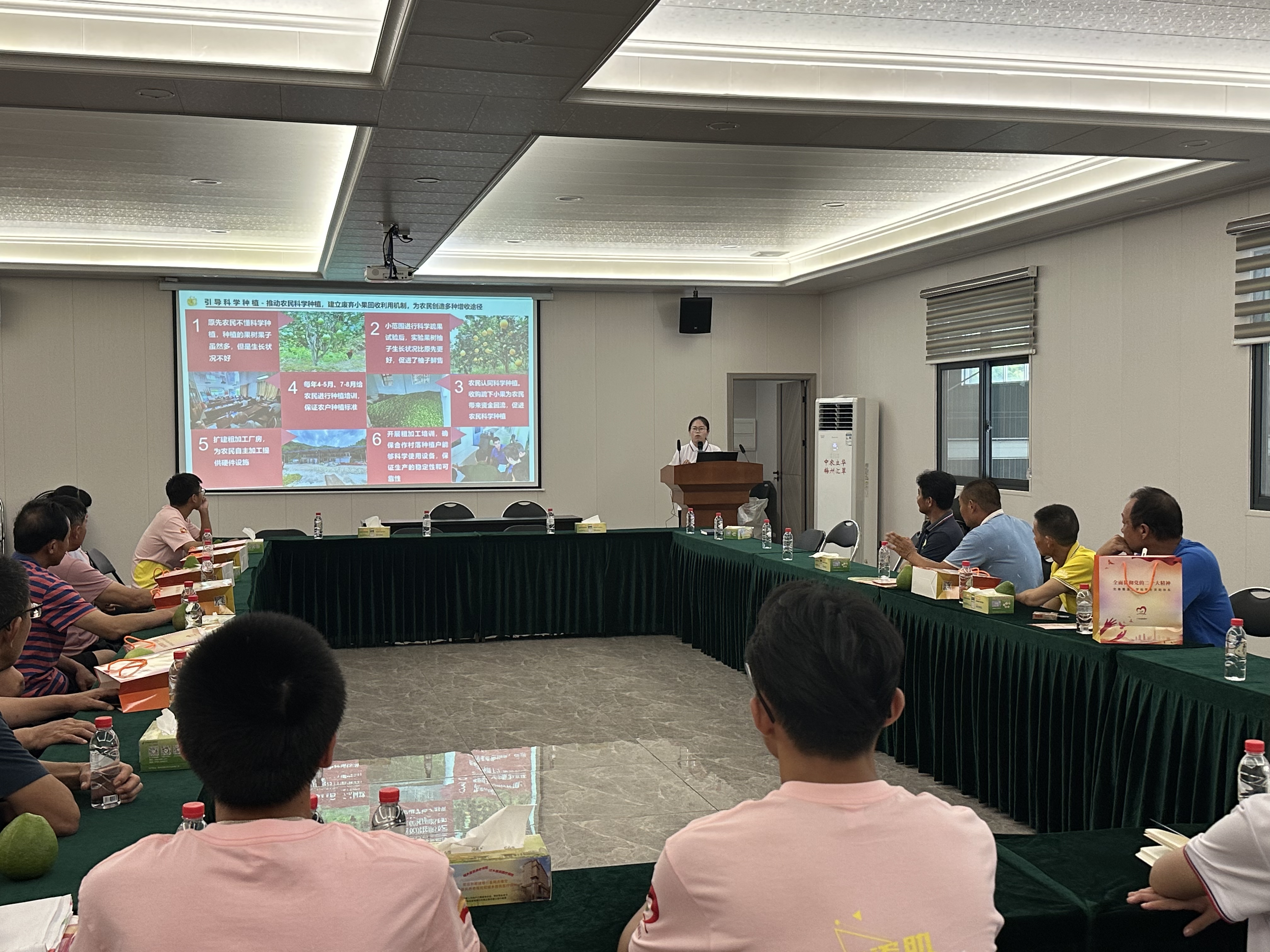 团队走访梅州石扇镇等村落,开展梅州柚子特色农产品的调研,围绕柑橘废果综合加工利用,结合专业知识展开知识科普、志愿帮扶活动。把“高校团队+当地合作企业+农村合作社”的乡村振兴模式进行推广,畅通从高校实验室到田间地头再到市场的产学研渠道,闯出一条人才培养、科技创新、服务产业、助力地方特色农产品产业振兴的综合发展之路。