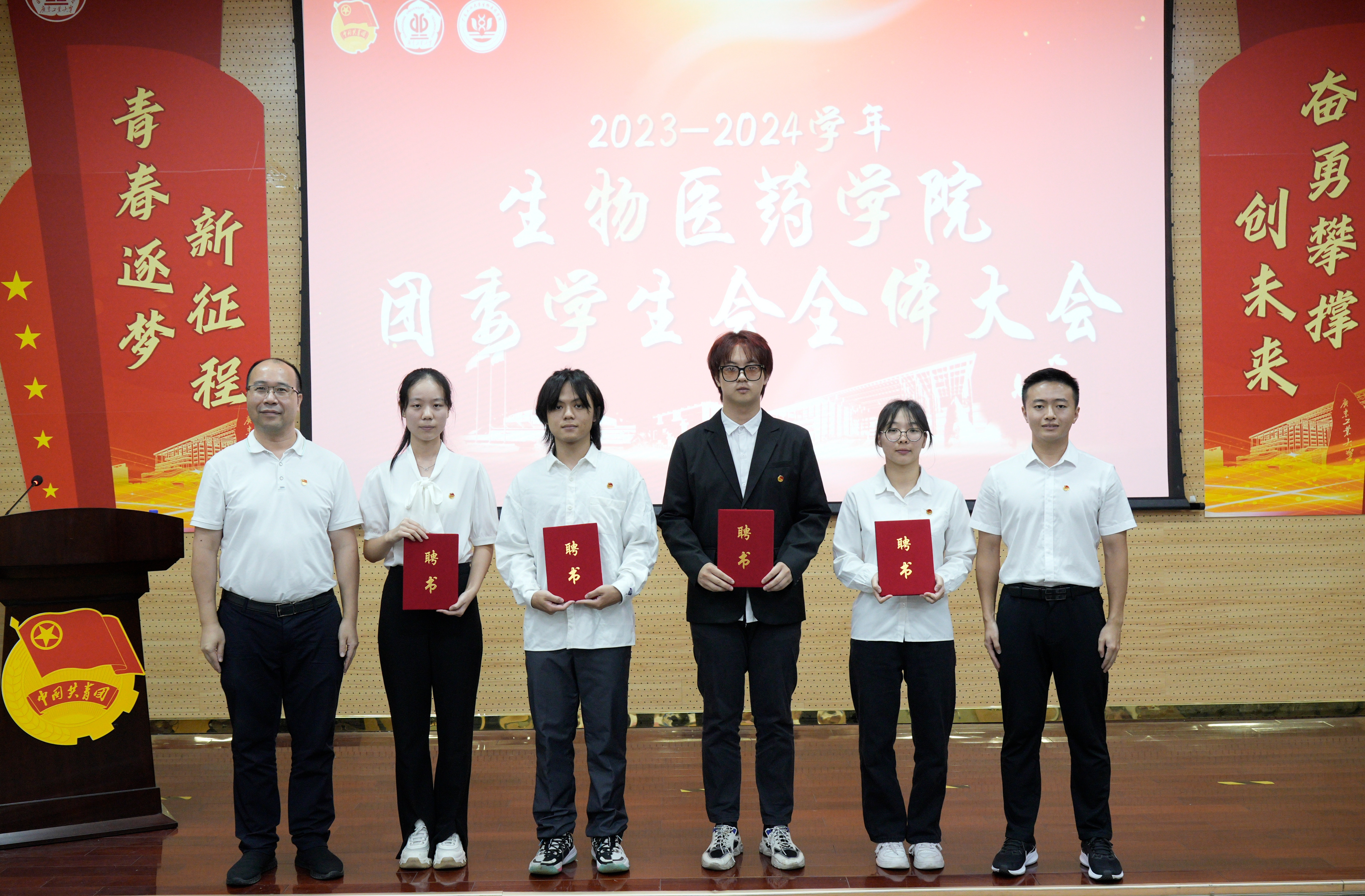 学院团委学生副书记陈洁滢作学院团委工作总结和未来展望的发言,并向在场同学分享服务同学的工作体会,以求真务实的态度,在工作中积极思考、主动沟通;合理规划,提高处事效率,平衡学习、工作与生活的关系。学院学生会执行主席南露珂作学院学生会工作总结和未来展望的发言,并向在场团学骨干发出倡议:要能够找准位置,明确职责;要做到齐心协力,团结协作;要勇于集思广益,返躬内省。随后进行聘书颁发仪式。