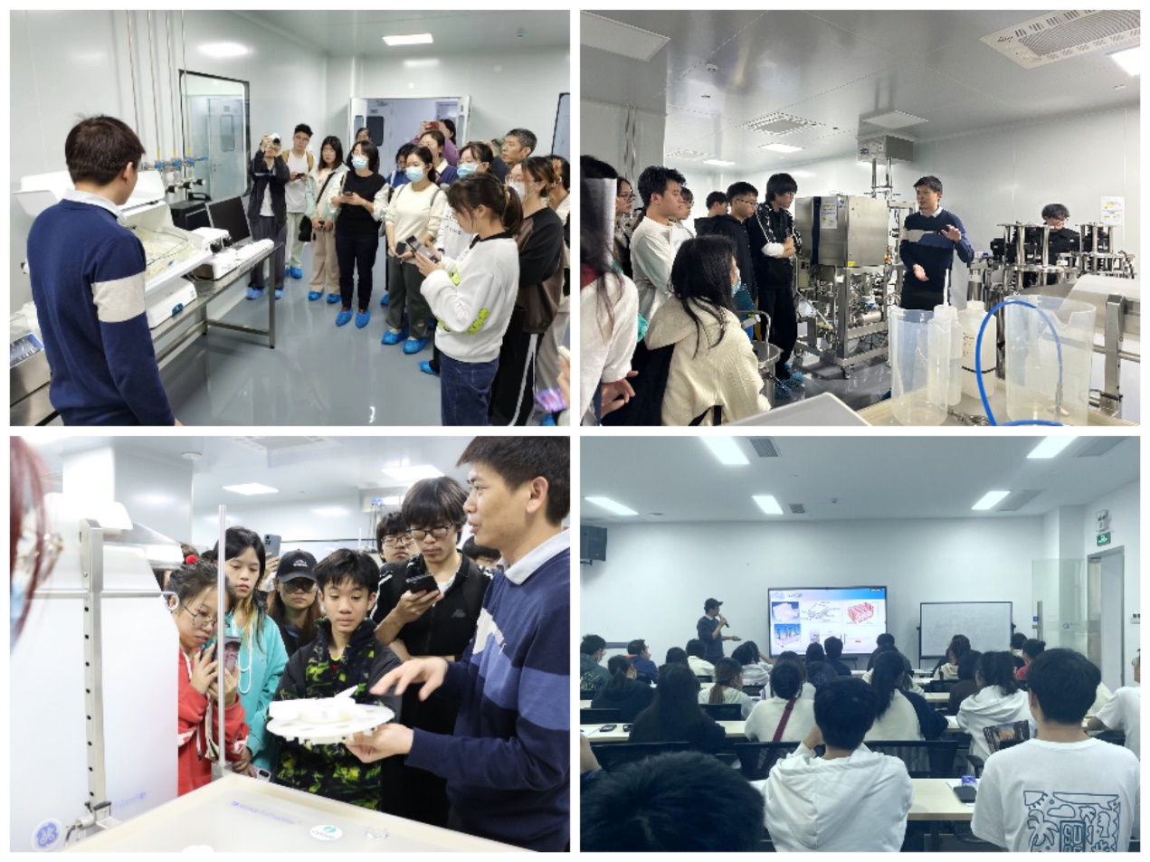 1月9日下午,制药工程专业师生来到位于生物岛的广州生物制造工艺研究培训中心。该公司建设有模拟标准生产环境下的现代生物制药工艺全线高端设备。在这里,同学们聆听了《生物药及其生产》的专题讲座,参观了生物制药上游车间(接种间、细胞培养与收获室),下游车间(纯化一间、纯化二间)和技术间等。由于同学们刚刚学习完《制药分离工程》课程,通过此次实地参观和技术总监的悉心讲解,同学们纷纷体会到书本知识的具象化,在参观过程中展开了热烈的讨论。