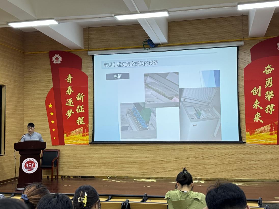 实验中心主任陈修财副教授进行了《加强生物安全建设,提高风险应对能力》的主题讲座。在讲座中,陈主任详细解读了《病原微生物实验室生物安全管理条例》,特别关注了病原微生物的分类及其潜在危害。此外,他还对足球直播平台 实验室的生物安全防护现状进行了分析,并提出了相关改进措施,旨在提高师生应对生物安全风险的能力。