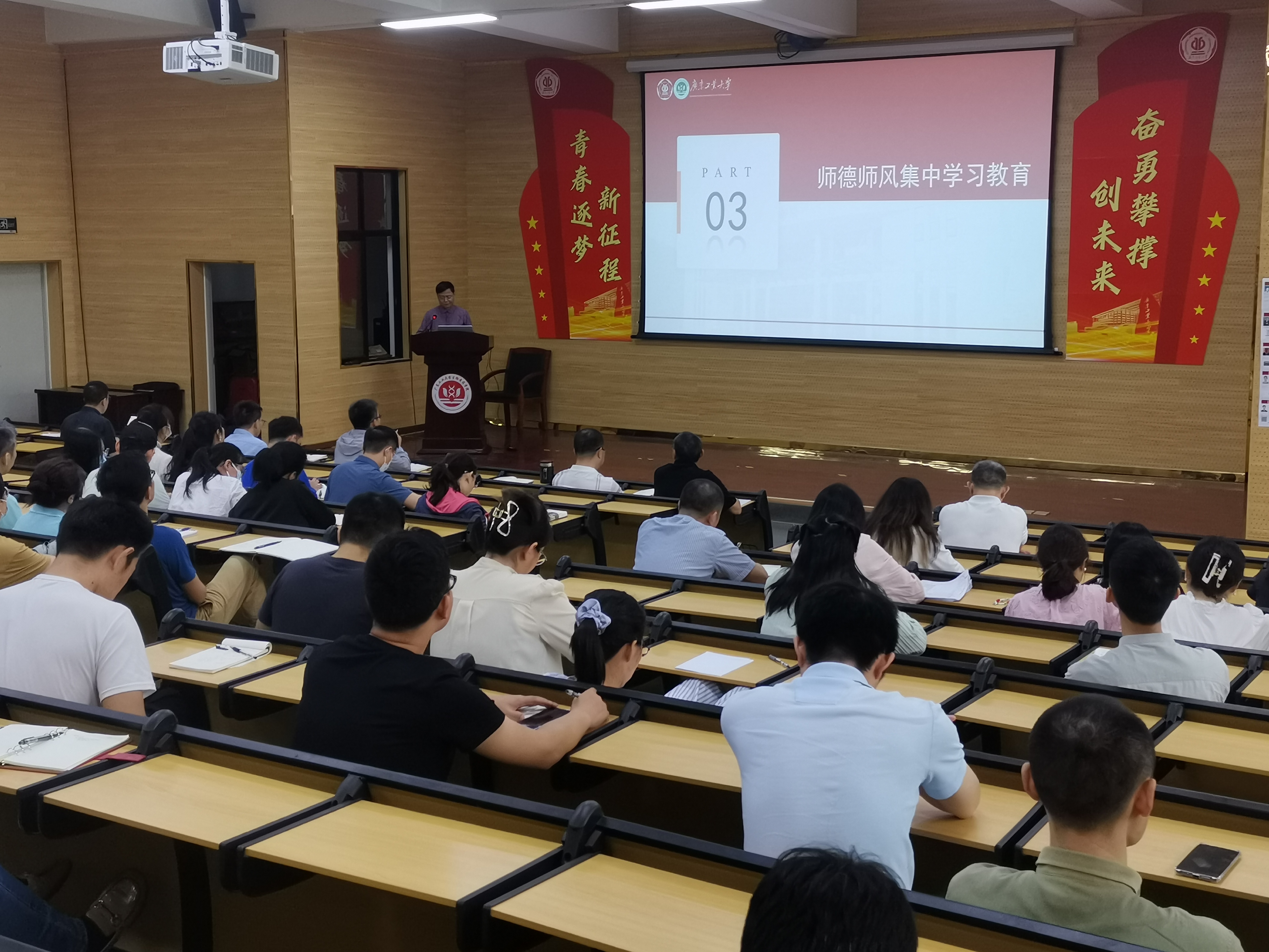 学院党委书记徐向东以实际案例,分析看足球的网站 当前存在的师德师风方面的问题和风险,带领全院教职工学习《广东工业大学教职工考核管理办法》、《广东工业大学师德考核实施办法(试行)》、《广东工业大学教师师德失范行为处理办法》等学校师德师风建设有关文件,重点解读教师职业道德规范、师德负面清单、师德失范行为处理等相关内容。