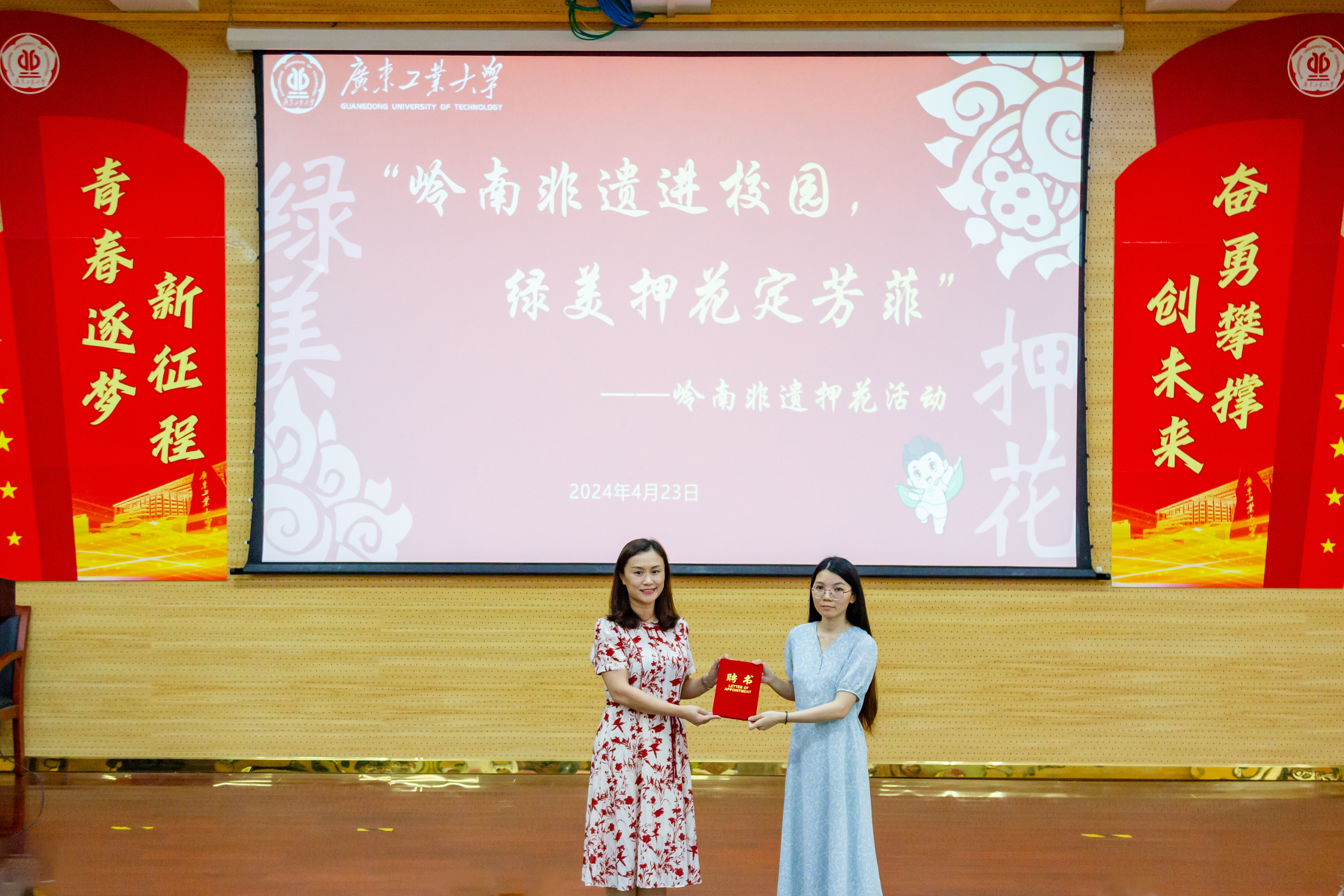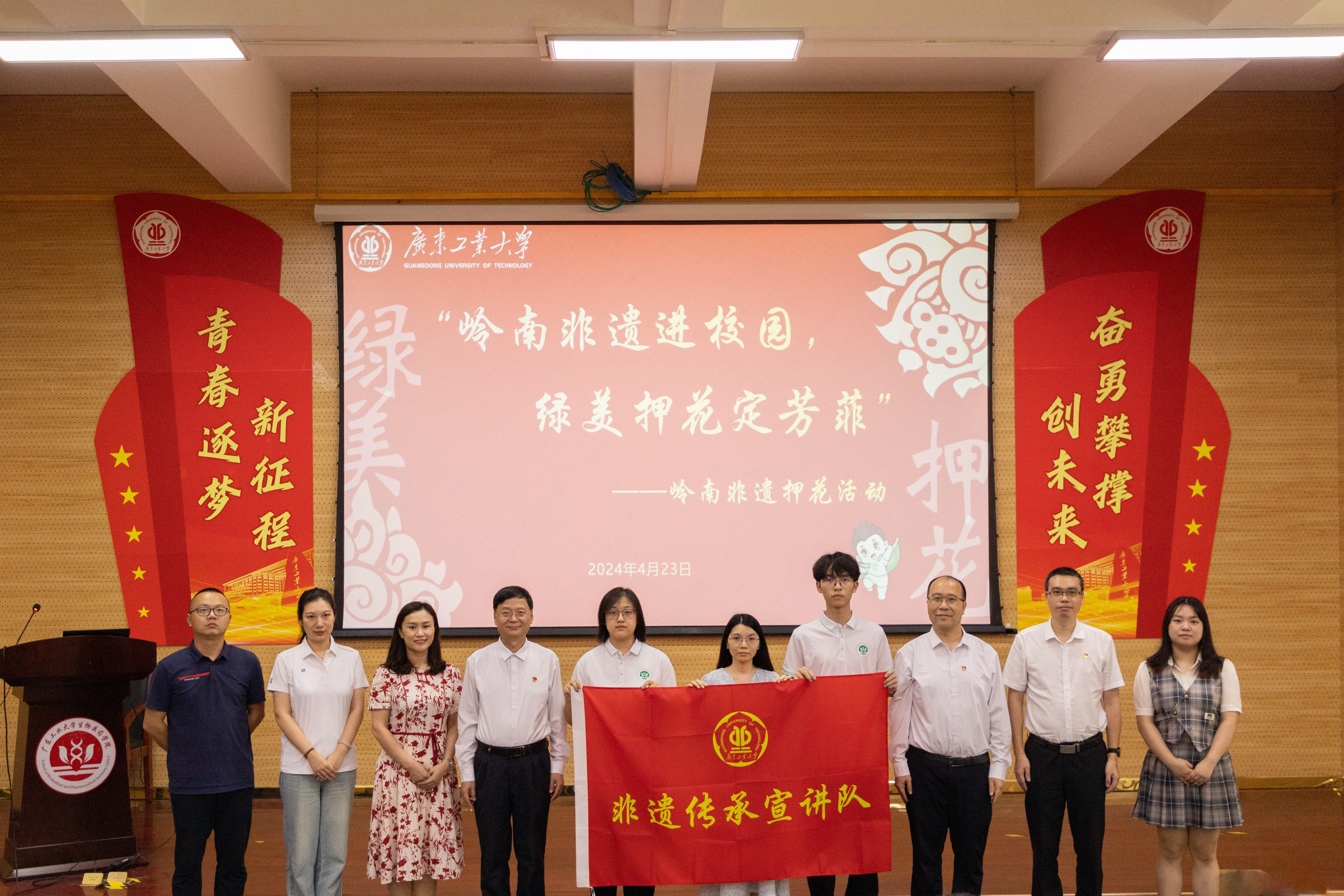 4月23日下午,足球直播平台 和环境科学与工程学院于科技南楼学术报告厅共同开展“岭南非遗进校园,绿美押花定芳菲”——岭南非遗押花活动。岭南押花艺术传承人李丽坚、金冬妮,学校心理健康教育中心副主任范梦,环境科学与工程学院党委副书记谭敬康,足球直播平台 党委书记徐向东、党委副书记张智,两院学工队伍以及学生代表参加本次活动。