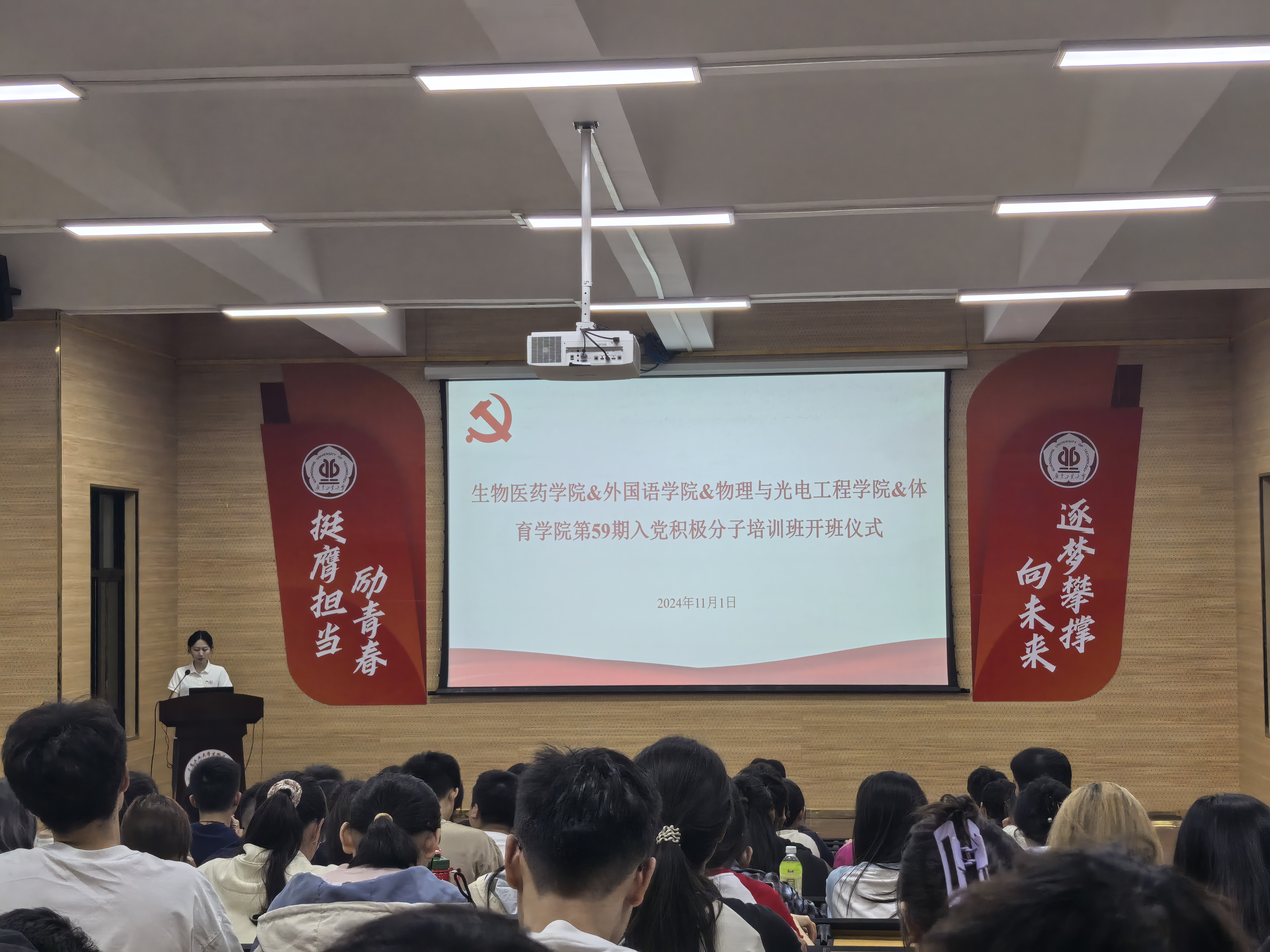 为深入学习贯彻党的二十届三中全会精神,切实把牢党员“入口关”,提高入党积极分子的思想政治素养和政治理论修养,11月1日至11月3日,看足球的网站 与外国语学院,物理学院和体育学院,联合举办了第59期入党积极分子培训班。开班仪式由辅导员潘子静主持。