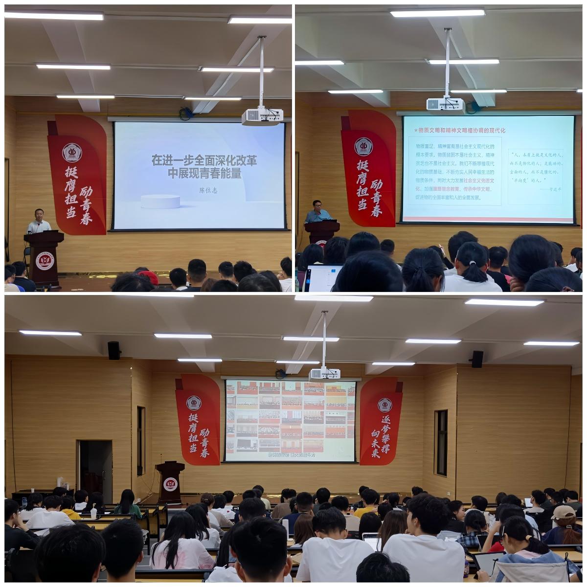 11月2日上午,我校马克思主义学院副院长陈位志为学员开展题为《在进一步全面深化改革征程中展现青春能量》的第一堂理论课,陈位志首先就国际国内形势分析进一步全面深化改革的重要性和必要性,从进一步全面深化改革的目标、原则、重点以及结构进行详细讲解,并对如何走在时代前列、展现青春能量和担当提出了自己的思考,引导学员们在深化改革的时代背景下,在改革的洪流中,坚定自我,立足根本,绽放青春光彩,实现自我价值。接着,我校马克思主义学院副院长张中鹏以《青年高质量发展与中国式现代化》为题,给学员们讲授第二堂理论课,主要从中国式现代化的科学内涵、中国式现代化的五大特征以及如何在中国式现代化进程中贡献力量三个方面展开讲解,希望同学们坚定不移听党话,跟党走,争做有理想、敢担当、能吃苦、肯奋斗的新时代好青年。课后,学员们集中观看《党章电视辅导教材》,并围绕“学习党的二十届三中全会精神,争做新时代好青年”开展研讨分享。