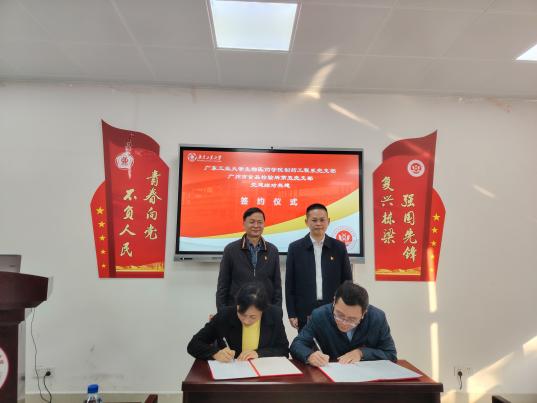 12月19日下午,足球直播平台 制药工程系党支部与广州市食品检验所第五支部举行了主题为“党建引领,共筑食药安全堡垒,携手育人创未来”的党建结对共建活动。与会人员有广州市食品检验所党总支书记、所长胡凌,市市场监管局调研员李璠,市食品检验所有机分析部部长、第五党支部书记王宇,及支部成员;足球直播平台 党委书记徐向东、副书记张智、副院长郑杰、副院长叶金星,制药工程系党支部书记周丽华、副书记程瑞华、系副主任何燕及支部成员等。 此次活动的举行,是对双方在2023年12月7日开展的“支部共联共建暨检验检测技术领域创新研究探讨”成果的一次全面深化与发展,进一步推动了双方在党建领域的深度融合,为未来的合作奠定了坚实的基础。