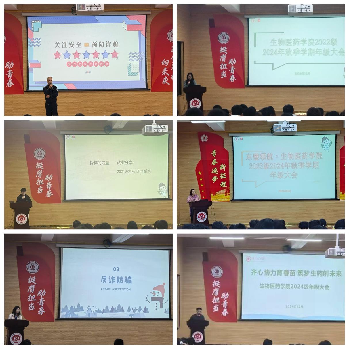 学生安全宣传员刘可欣在2024级年级会议上结合真实案例,深入浅出地讲解了关于防诈、反诈特别是防范电信诈骗的知识,并提供了与之对应的防范技巧和防诈小贴士。宣讲后,黄文浩督促同学们,面对进入大学后的第一场期末考试,要提前做好复习规划,合理安排时间,做到查漏补缺,并提醒同学们注意防火防盗,安全用电,注意假期安全。