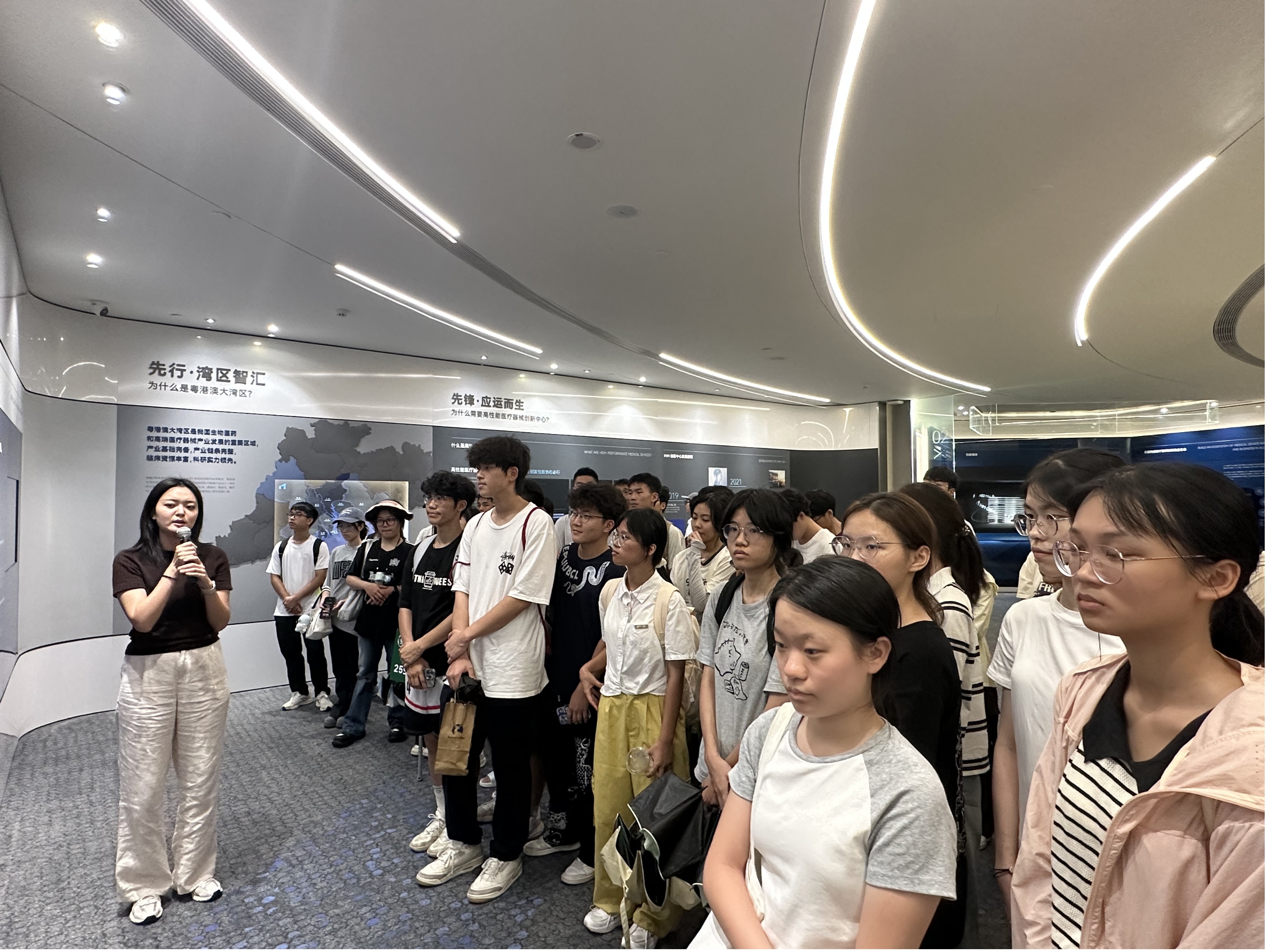 在粤港澳大湾区高性能医疗器械创新中心,生物医学工程专业学生走进医工融合的创新公共平台,深入了解当前我国高精尖医疗器械自主研发能力和产业化水平。在讲解员的带领下,同学们详细了解粤港澳大湾区高性能医疗器械创新中心的发展历程、优势产品、未来发展趋势,同学们参观了展厅中展出的自主研发的医疗器械新产品,通过讲解和现场产品的介绍,同学们认识到目前高端医疗器械研发生产的现状和市场需求,讲解员强调,目前我国医疗器械行业正经历从“规模扩张”向“价值创造”的关键转型,在政策红利、技术突破与市场需求的多重驱动下,展现出强大的创新活力和发展韧性,行业对交叉复合型人才的需求也不断提升,希望同学们通过扎实的专业学习,投身于行业的发展,助力我国高性能医疗器械的创新和研发。
