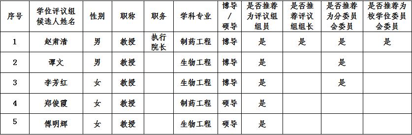 广东工业大学学位评定委员会、分委员会、评议组委员候选人推荐名单