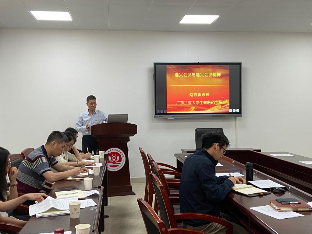 赵肃清围绕“遵义会议与遵义会议精神”展开,分三个篇幅讲解了会议召开的历史背景、过程及历史地位、会议精神及其启示,介绍了遵义会议确定的党中央新的领导核心、党的路线、党的军事战略方针等三个正确改变。