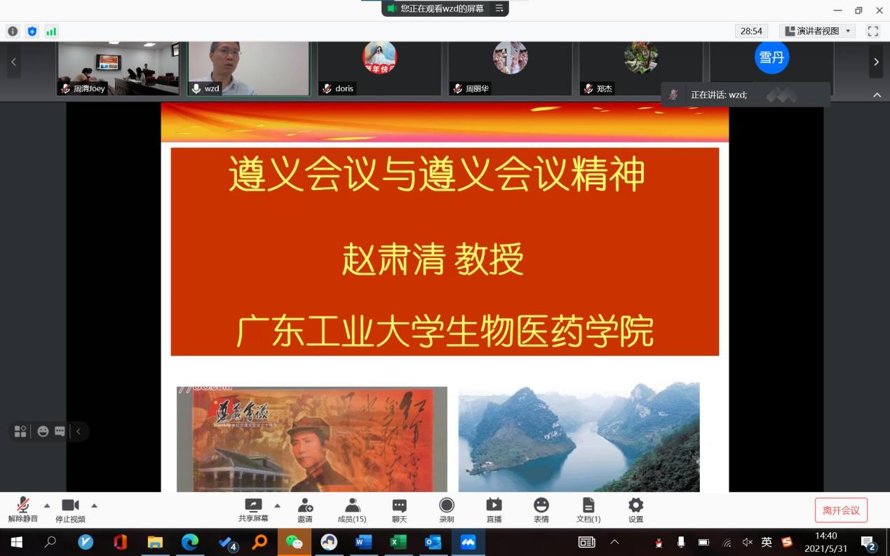 2021年5月31日,制药工程系党支部和生物工程系党支部联合邀请学院科研示范岗赵肃清教授和教学示范岗郑俊霞教授为两支部党员讲党课。会议由制药工程系支部书记丁金龙主持,两支部全体党员分别通过线上和线下方式参加了此次学习。