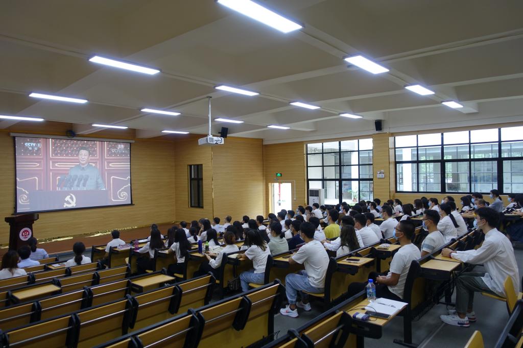 百年征程波澜壮阔,百年初心历久弥坚。7月1日上午8时,庆祝中国共产党成立100周年大会在北京天安门广场隆重举行,中共中央总书记、国家主席、中央军委主席习近平发表重要讲话。看足球的网站 组织师生党员、入党积极分子在科技南楼一楼报告厅同步收看直播。