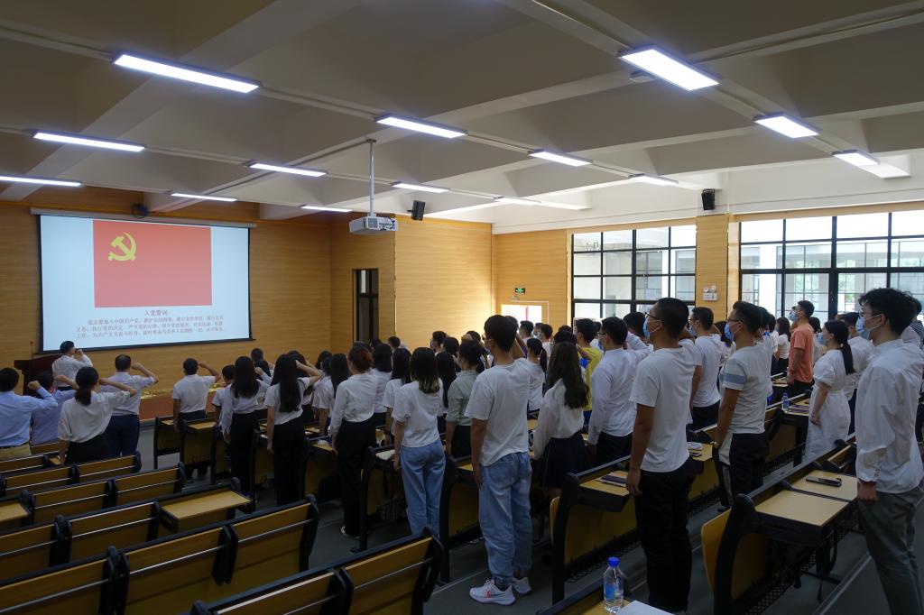 大会结束后,全体师生党员开展“重温入党誓词,坚定理想信念”主题活动,由学院党委书记徐向东领誓,全体党员举起右拳,重温入党誓词,以坚定有力的宣誓,表达筑牢初心使命,勇于担当历史使命的信念和决心。