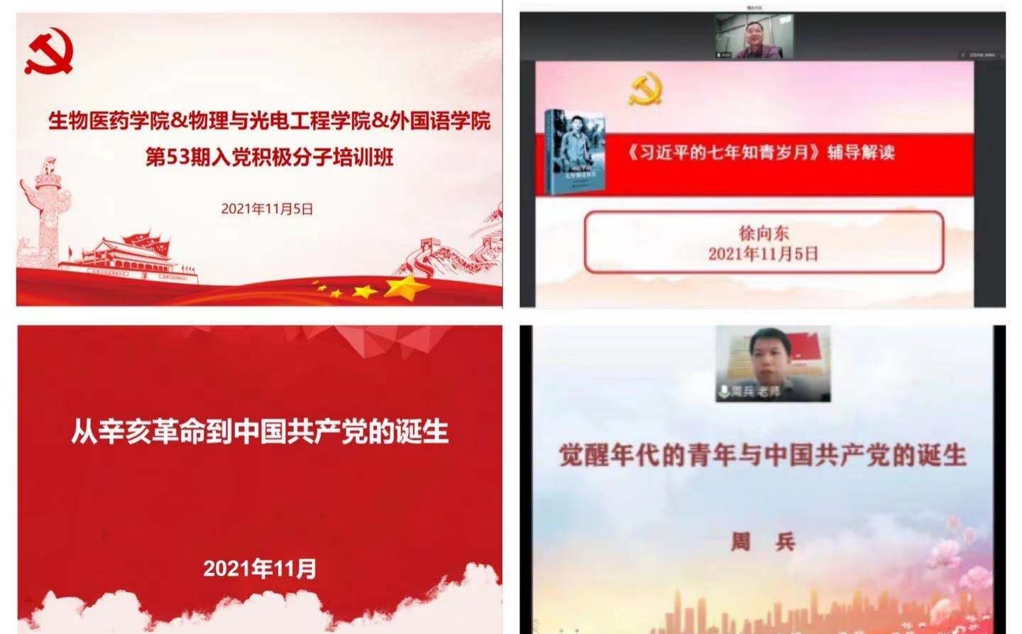 为加强对入党积极分子的培养教育,切实提高入党积极分子的政治素质和理论修养,11月5日-6日,看足球的网站 与外国语学院、物理与光电工程学院以线上线下结合的方式,联合举办第53期入党积极分子培训班。