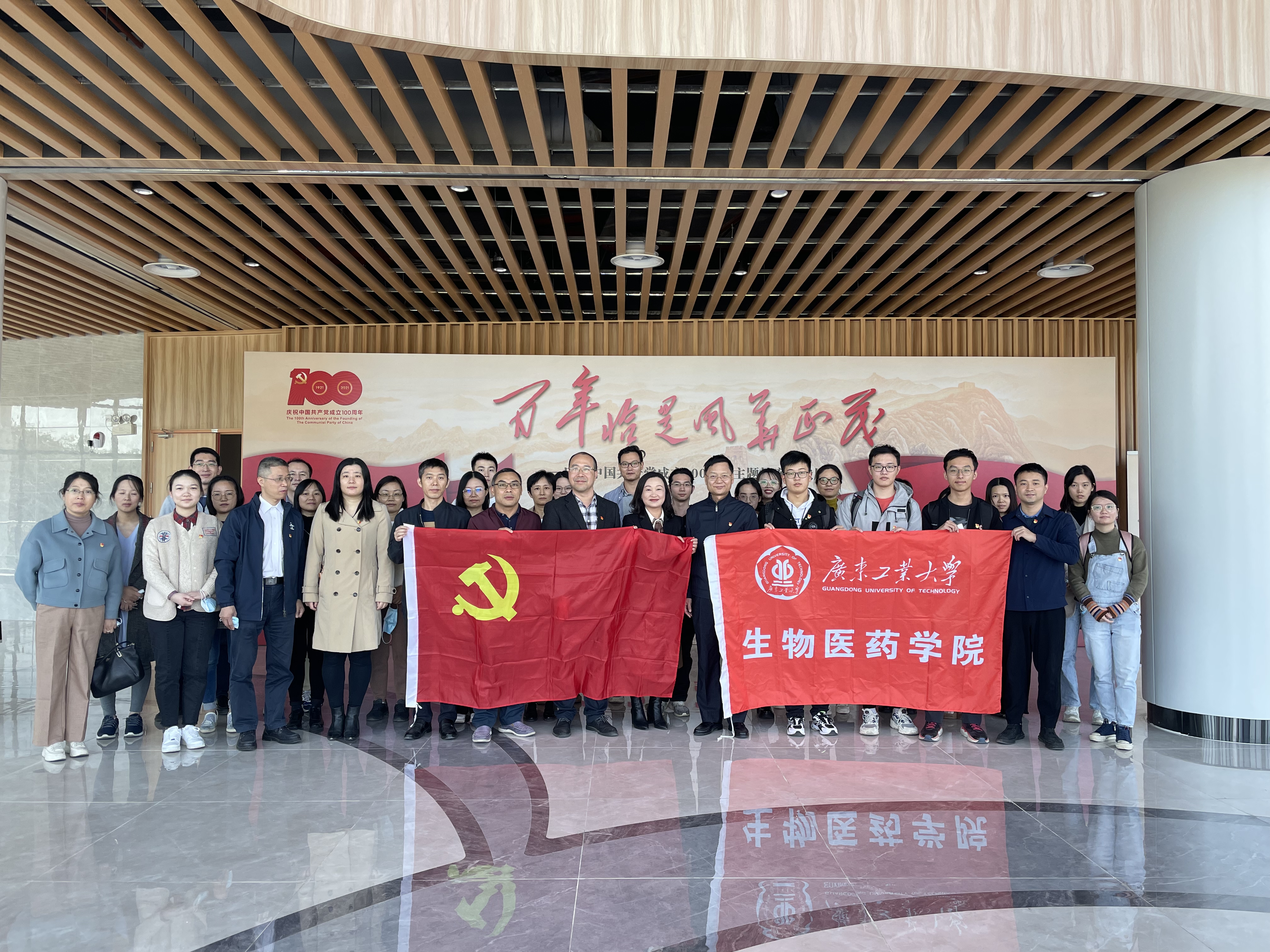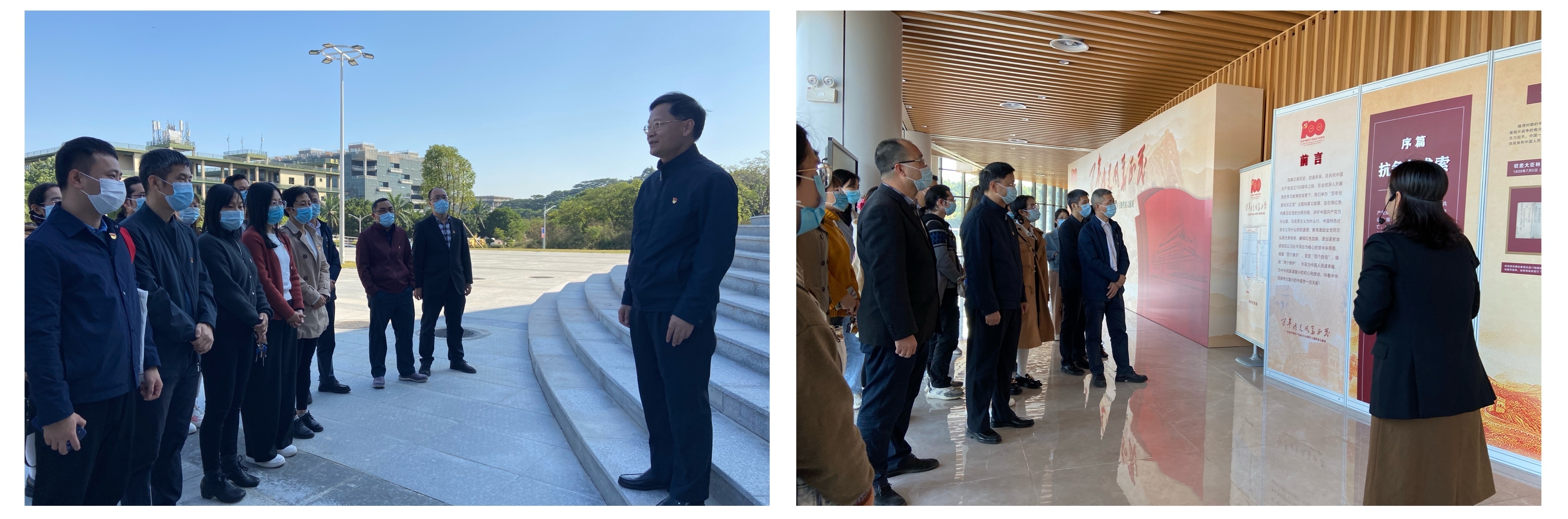 为深入学习贯彻习近平总书记“七一”重要讲话精神,深入学习贯彻党的十九届六中全会精神,扎实开展党史学习教育,2021年12月2日下午,看足球的网站 组织党委委员、支部书记、支部委员等师生党员干部前往大学城校区文化活动中心参观 “百年恰是风华正茂”庆祝中国共产党成立100周年主题档案文献展。