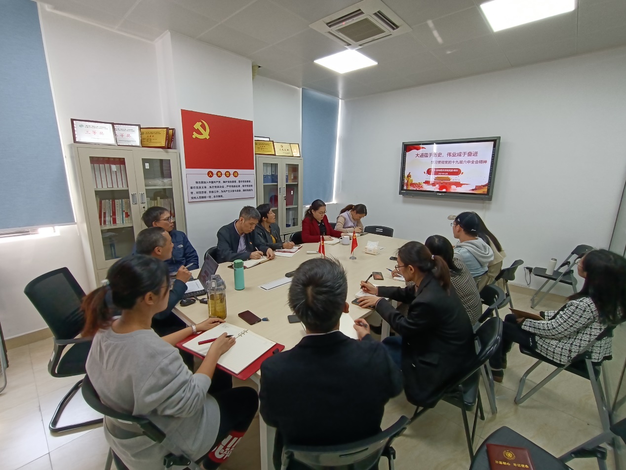 全体党员一致表示要潜心学习、贯彻十九届六中全会精神,凝心聚力,开拓创新,结合岗位工作实际,为学校、学院及专业建设作出应有贡献。